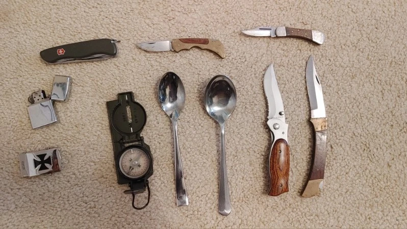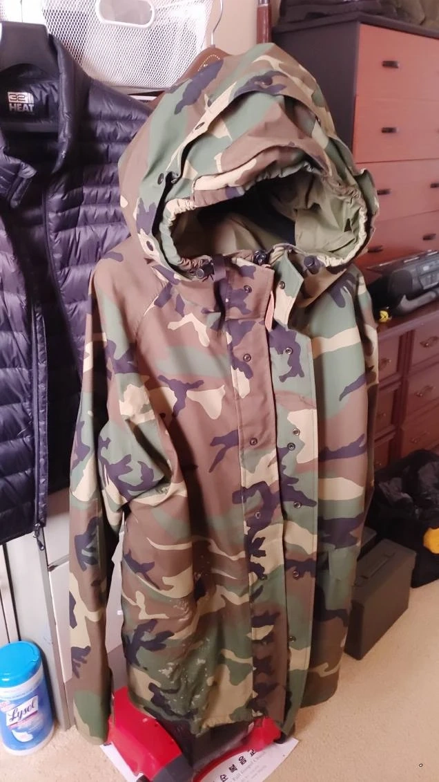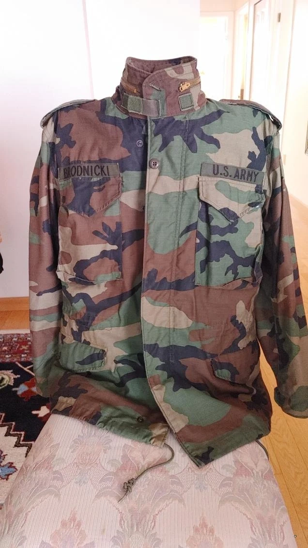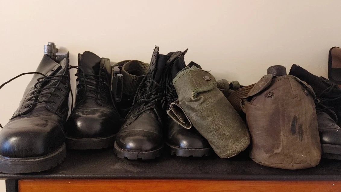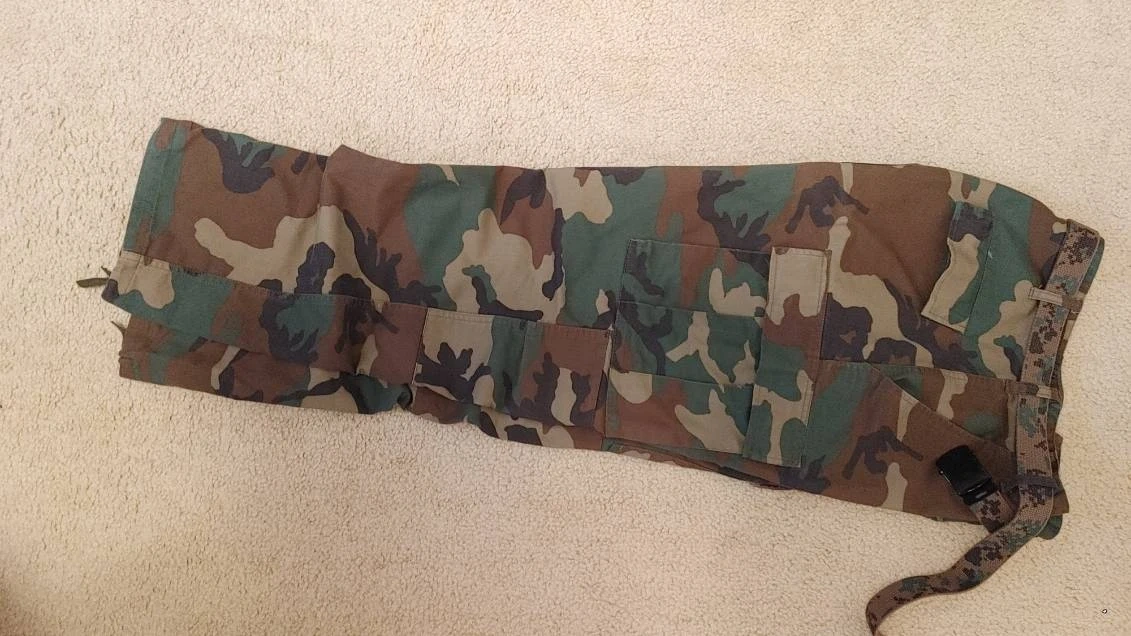 Military Camo Jacket, Pants, Vest, Boots, and Canteen