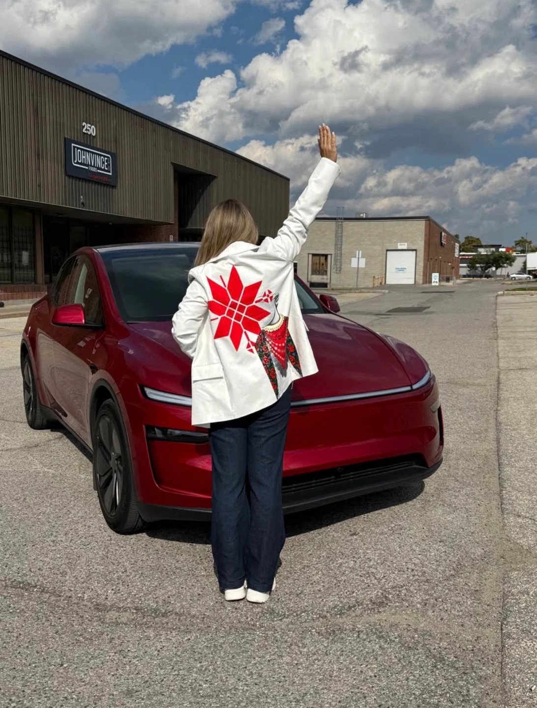 The design is inspired by Ukrainian ethnic motifs blended with modern artistic vision. Bold red symbol, expressive portrait, intricate details — a true statement piece with meaning and character.