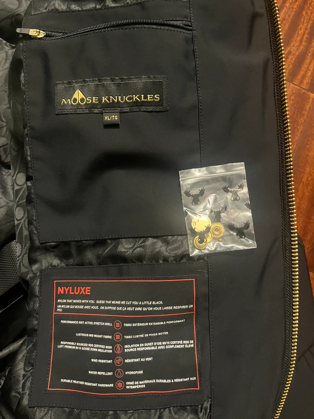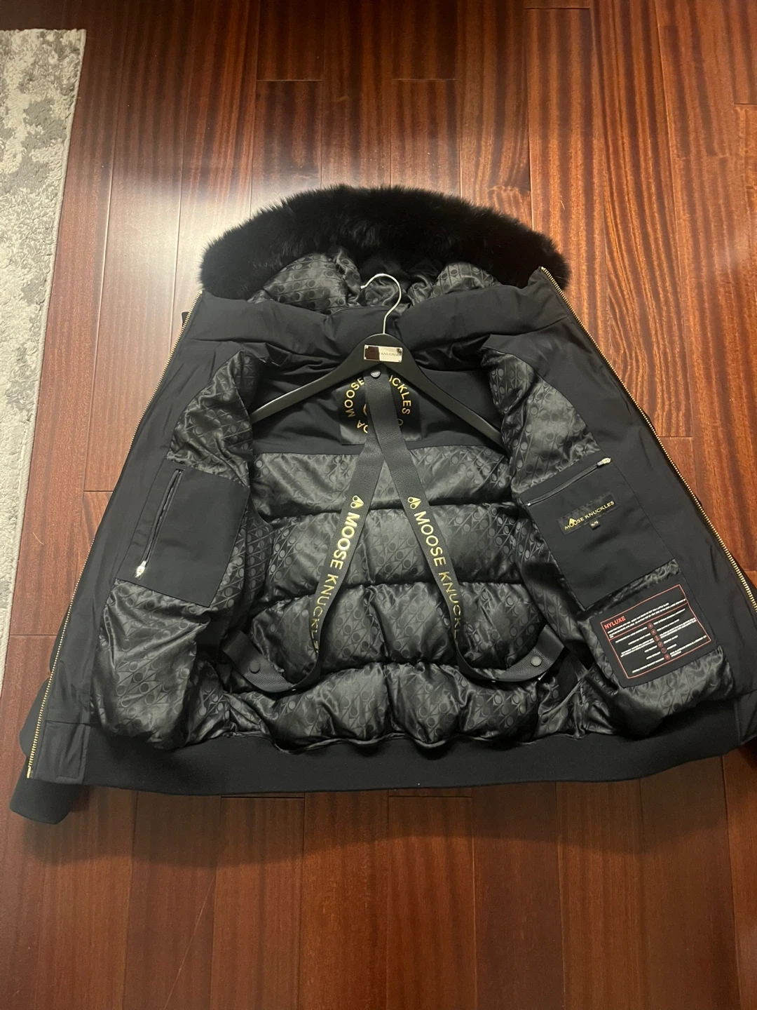 AUTHENTIC Moose Knuckle Gold Series Nyluxe Stagg Shearling Trim Bomber