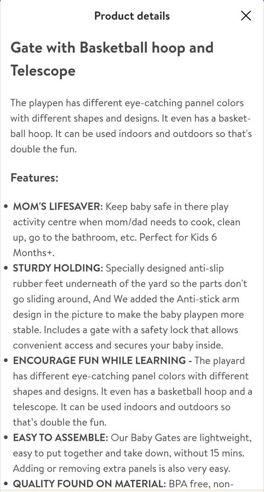 14 Panel Kids Playard w/ Gates, Hoop & Telescope