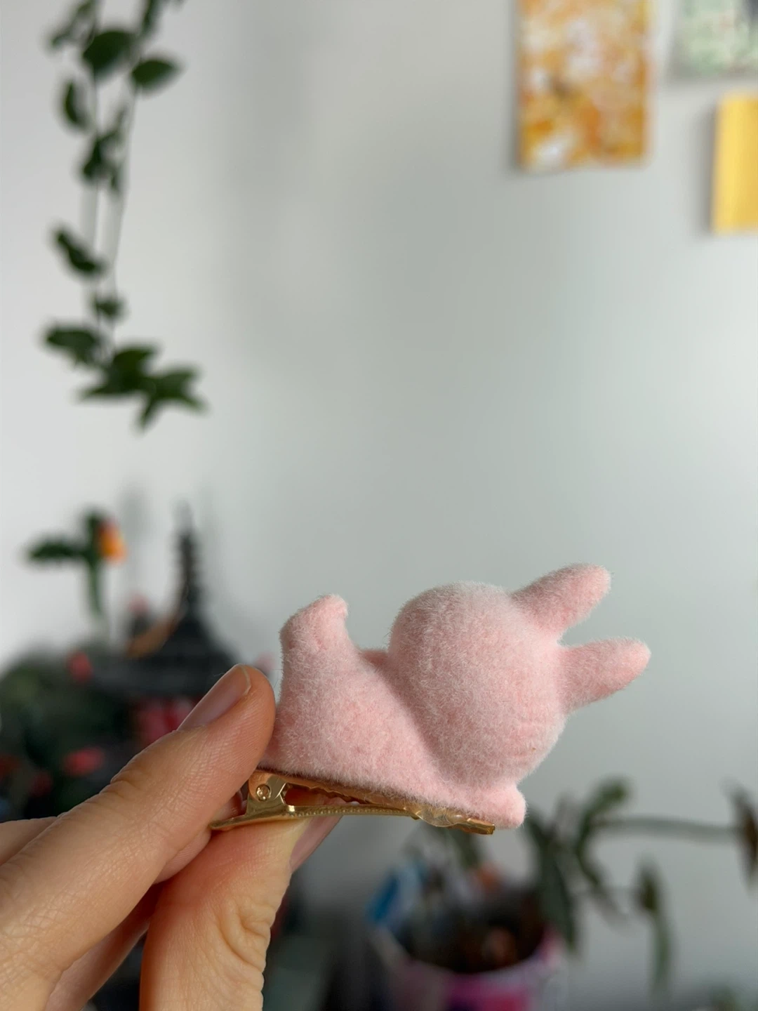 Super cute pink fuzzy bunny hair clip. It's soft and plush with embroidered details. Great for adding a fun touch to any hairstyle!
