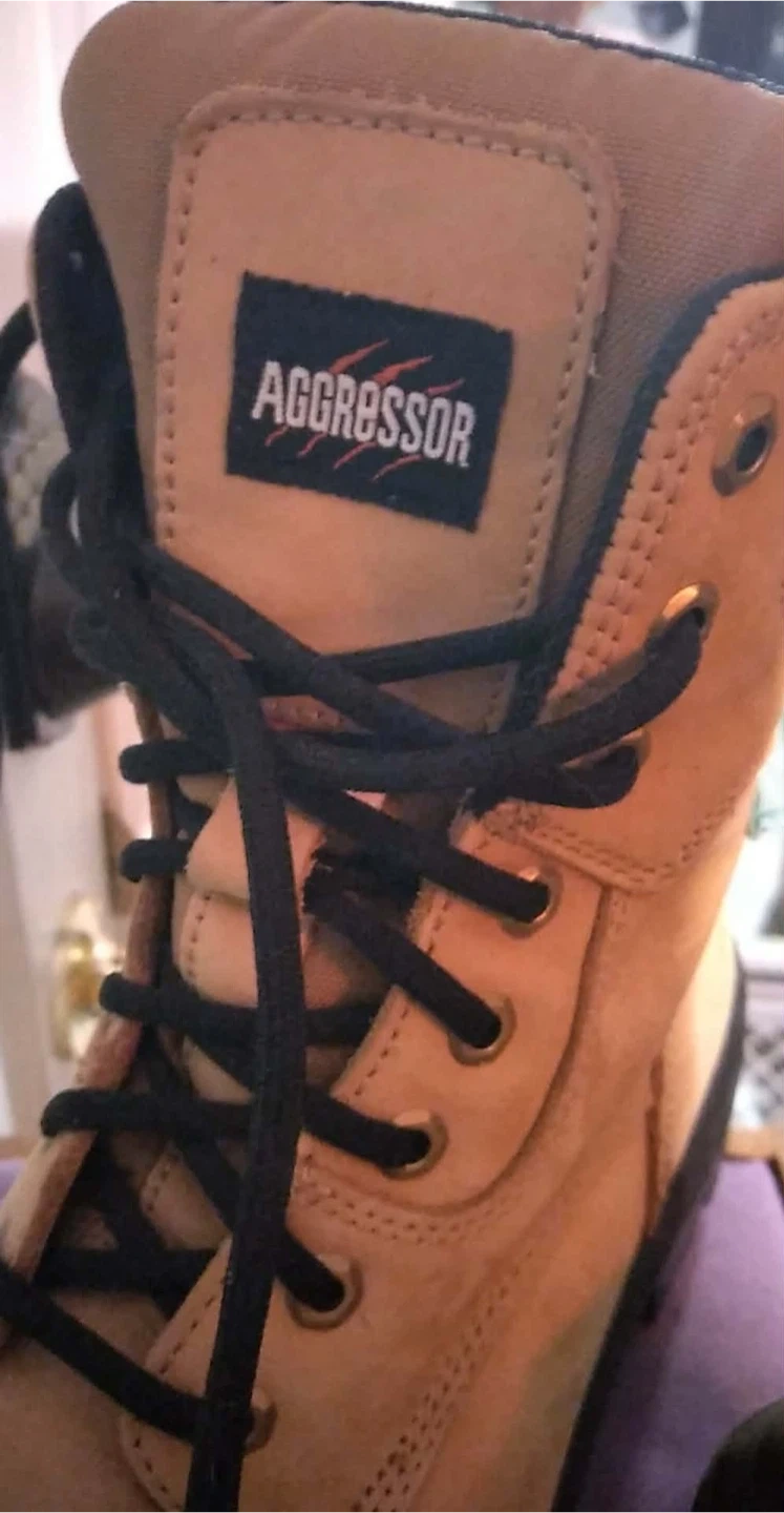 These Aggressor Dakota-2 work boots are a size CDN/US 8. Men’s They're made with durable materials and feature a steel toe for protection. Excellent for construction or demanding work environments!