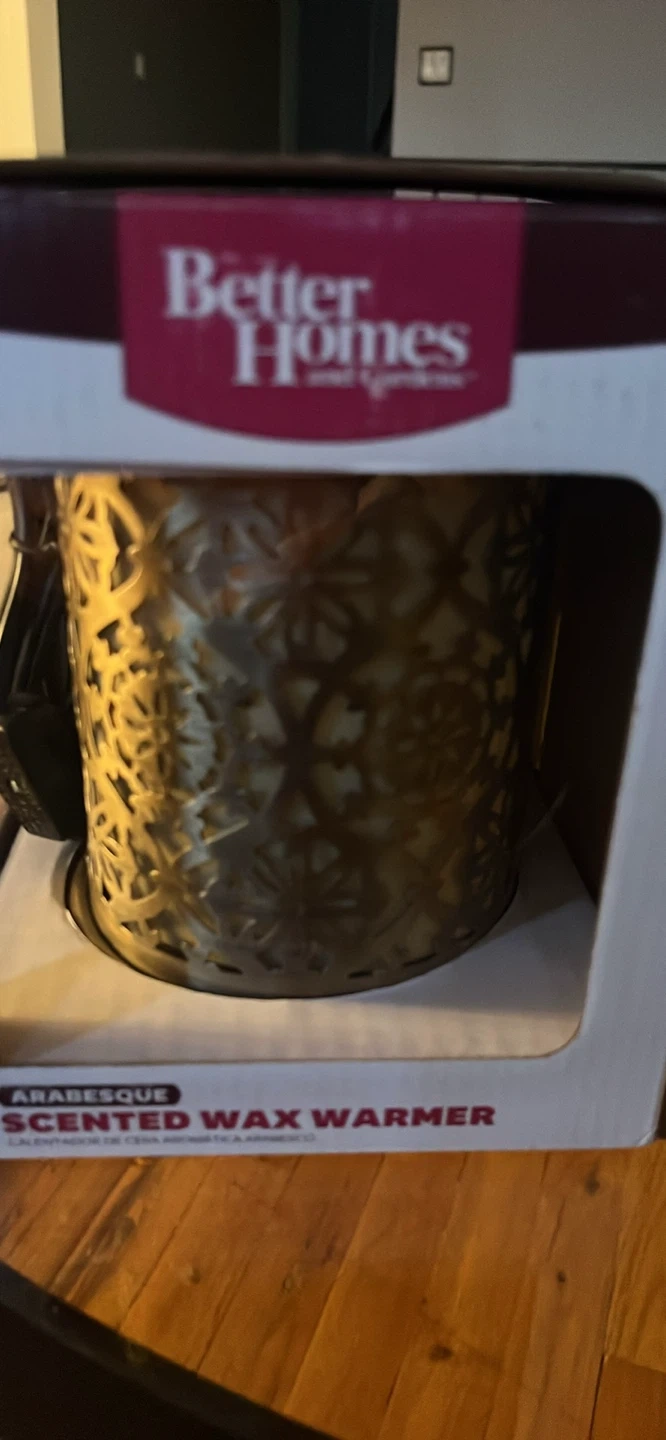Better Homes & Gardens Arabesque Scented Wax Warmer. It's designed with a decorative metal lattice. This wax warmer provides ambient light and fragrance to any room.