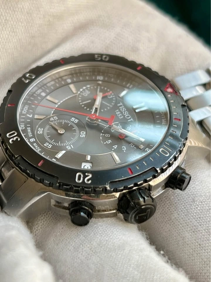 The watch is in good condition and works properly. The sapphire crystal is clean with no scratches. Bracelet and case show light signs of use. Note: The red triangular marker at 12 o'clock shows discoloration, please refer to photos. Pick up in Astoria, Queens, 11102.