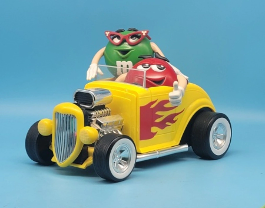 🥳VGC🤩 M&M's "REBEL" Without A Clue HOT ROD CAR Yellow