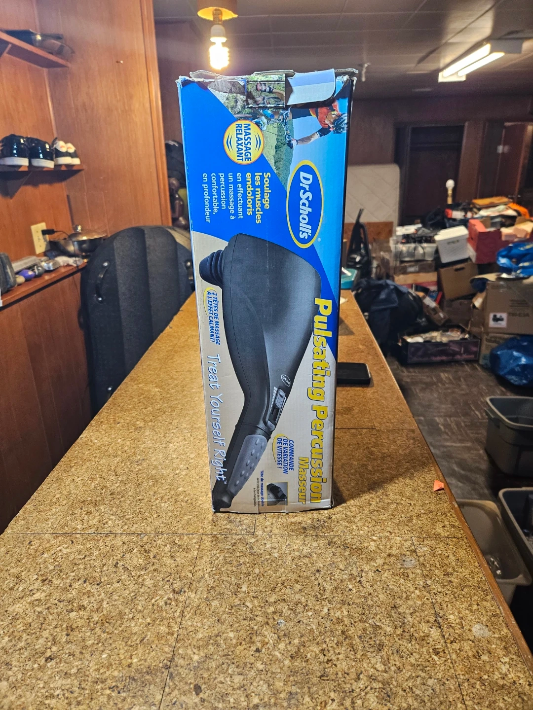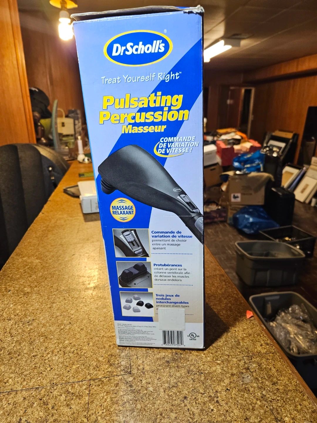 This Dr. Scholl's massager provides soothing action for aching muscles. It features dual massage heads with interchangeable nodes and variable speed control for a customized experience. Includes 2 soothing massage heads.