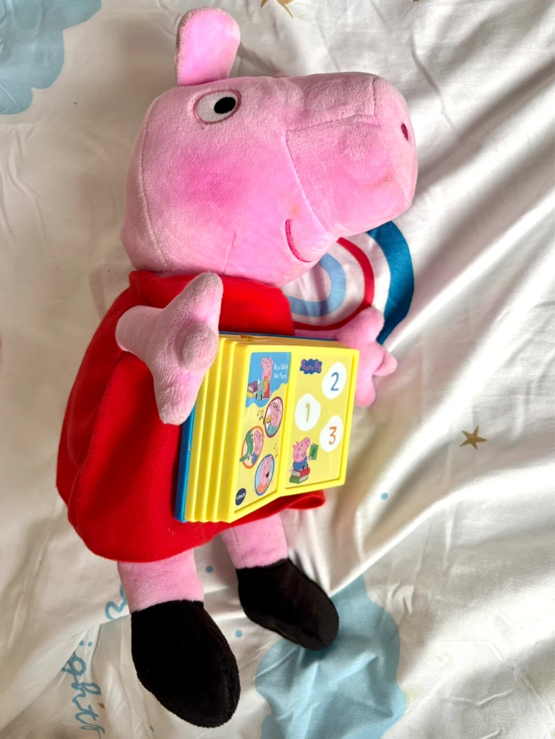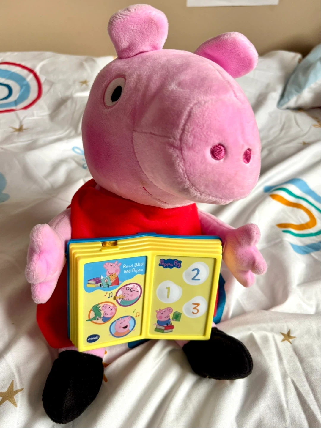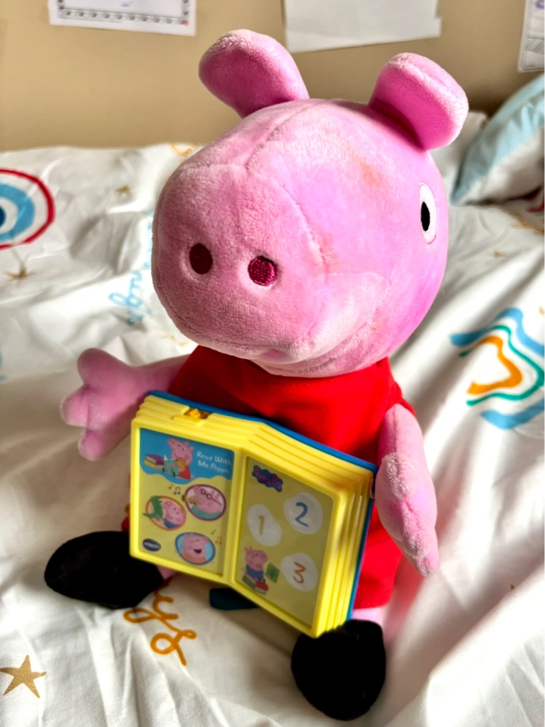 This VTech plush toy features Peppa Pig holding an interactive book. It's designed for young children to learn with Peppa. Great for little fans of the show!