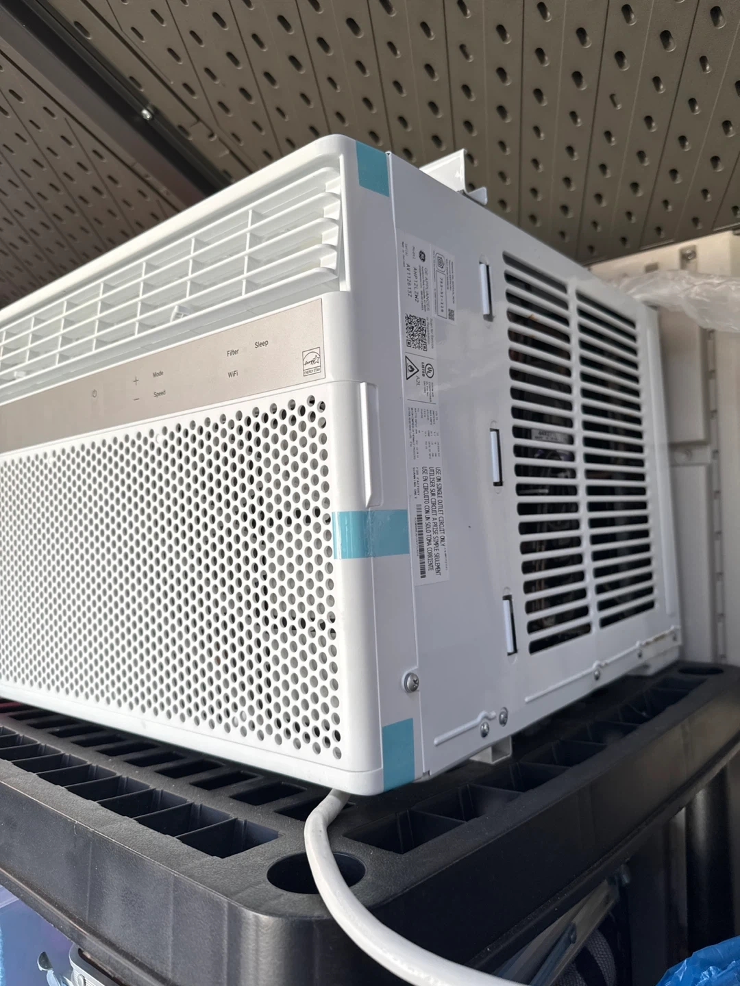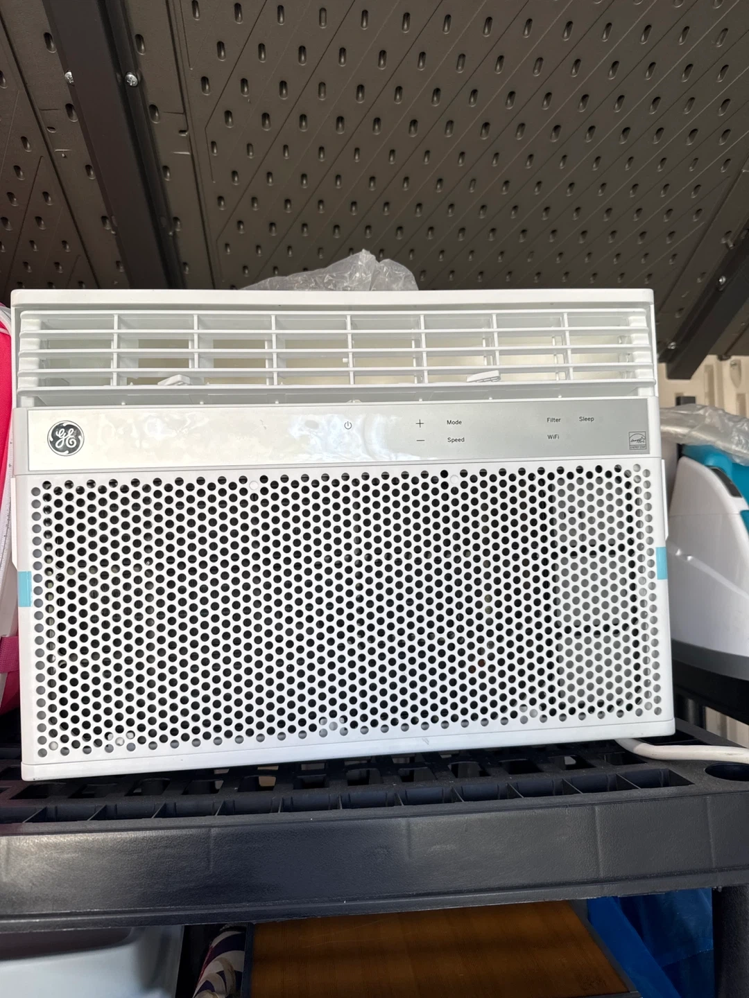 This GE window air conditioner provides cooling for your space. It features mode, speed, filter, and sleep settings. WiFi connectivity is also included.