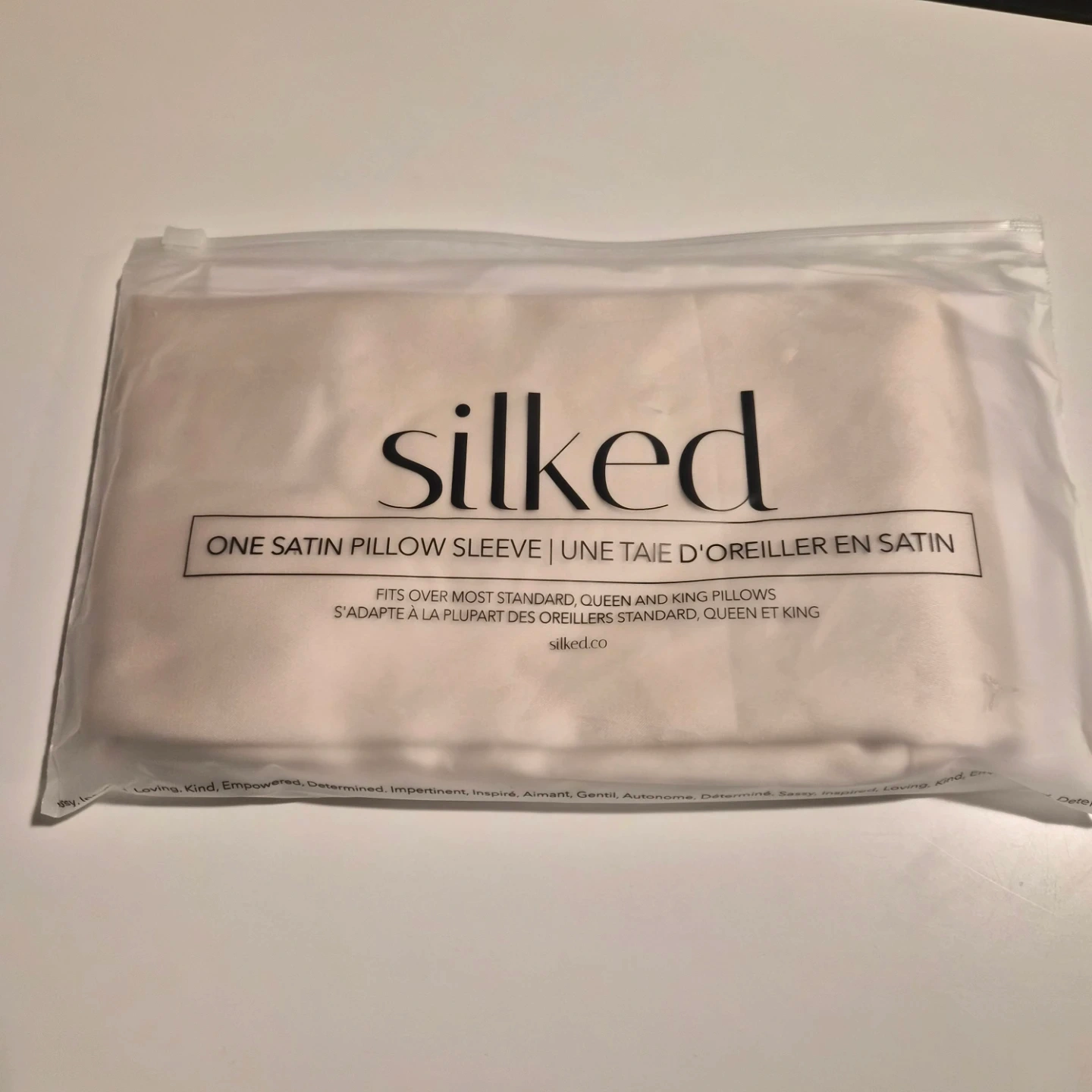 One satin pillow sleeve made of satin and fits over most standard, queen, and king pillows.