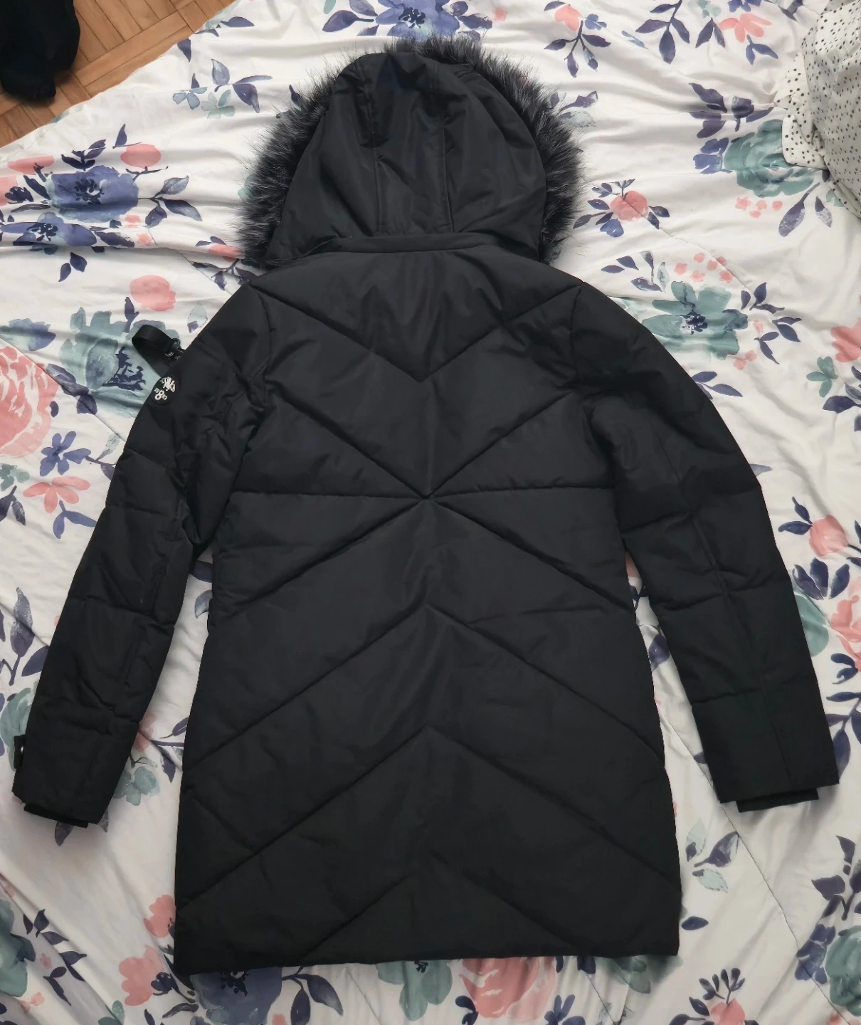 Nautica Black Puffer Coat with Fur Trimmed Hood