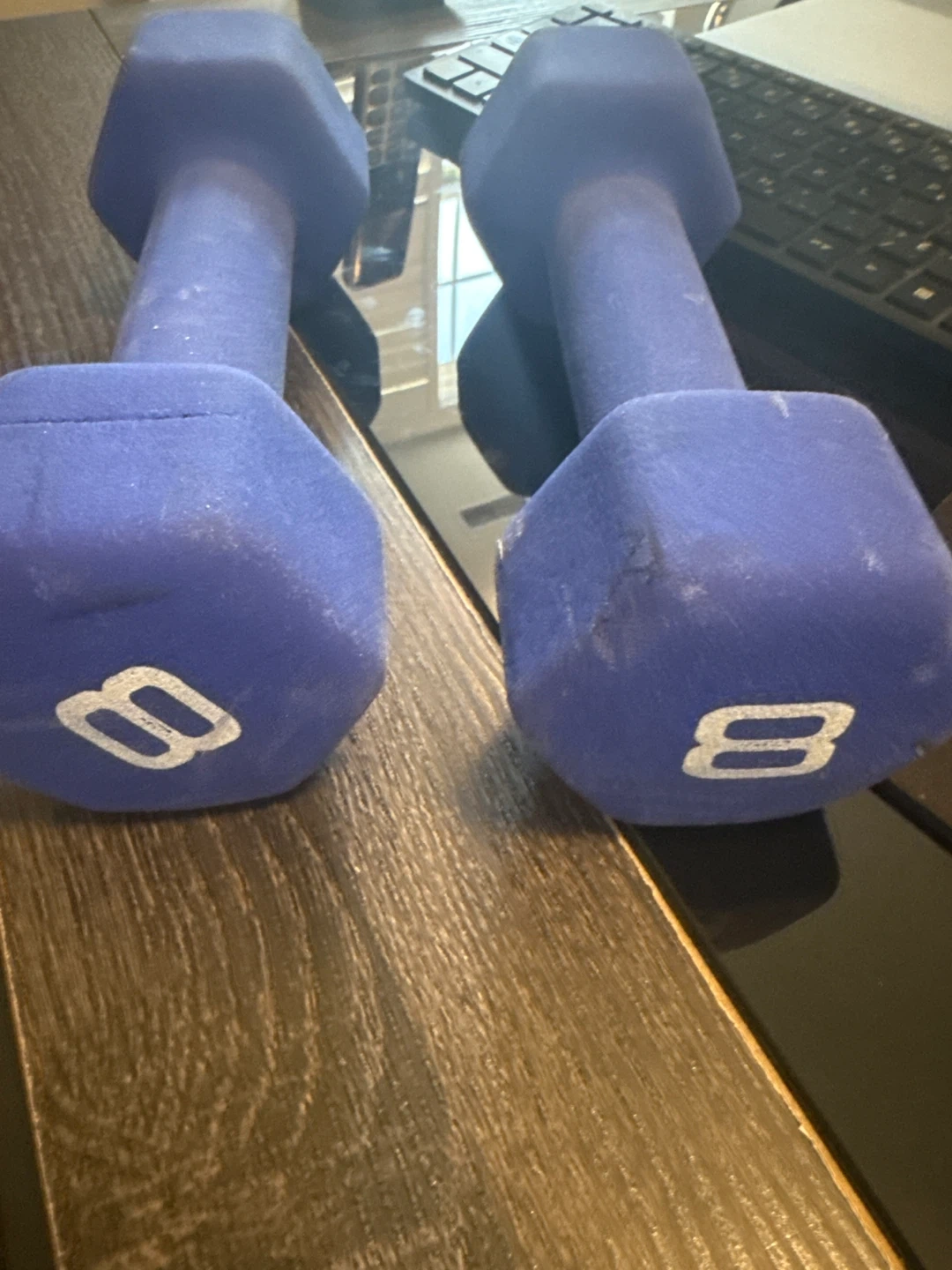 Selling a pair of 8 lb dumbbells. They're in good condition and ready for your home workouts!