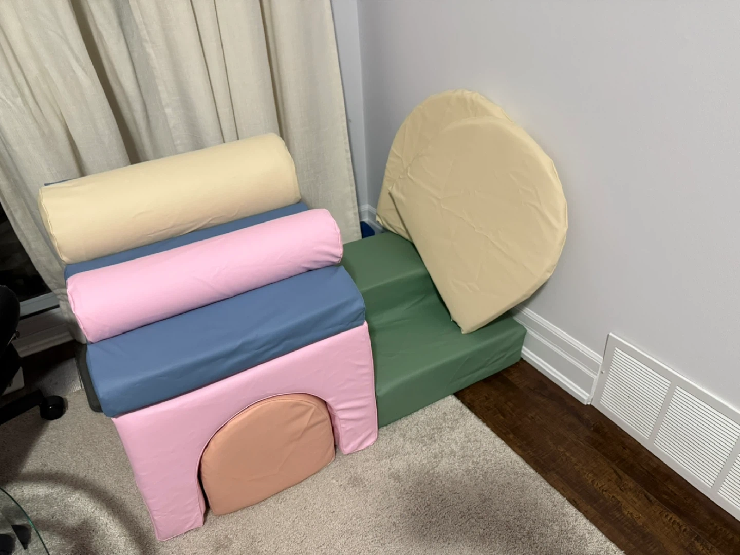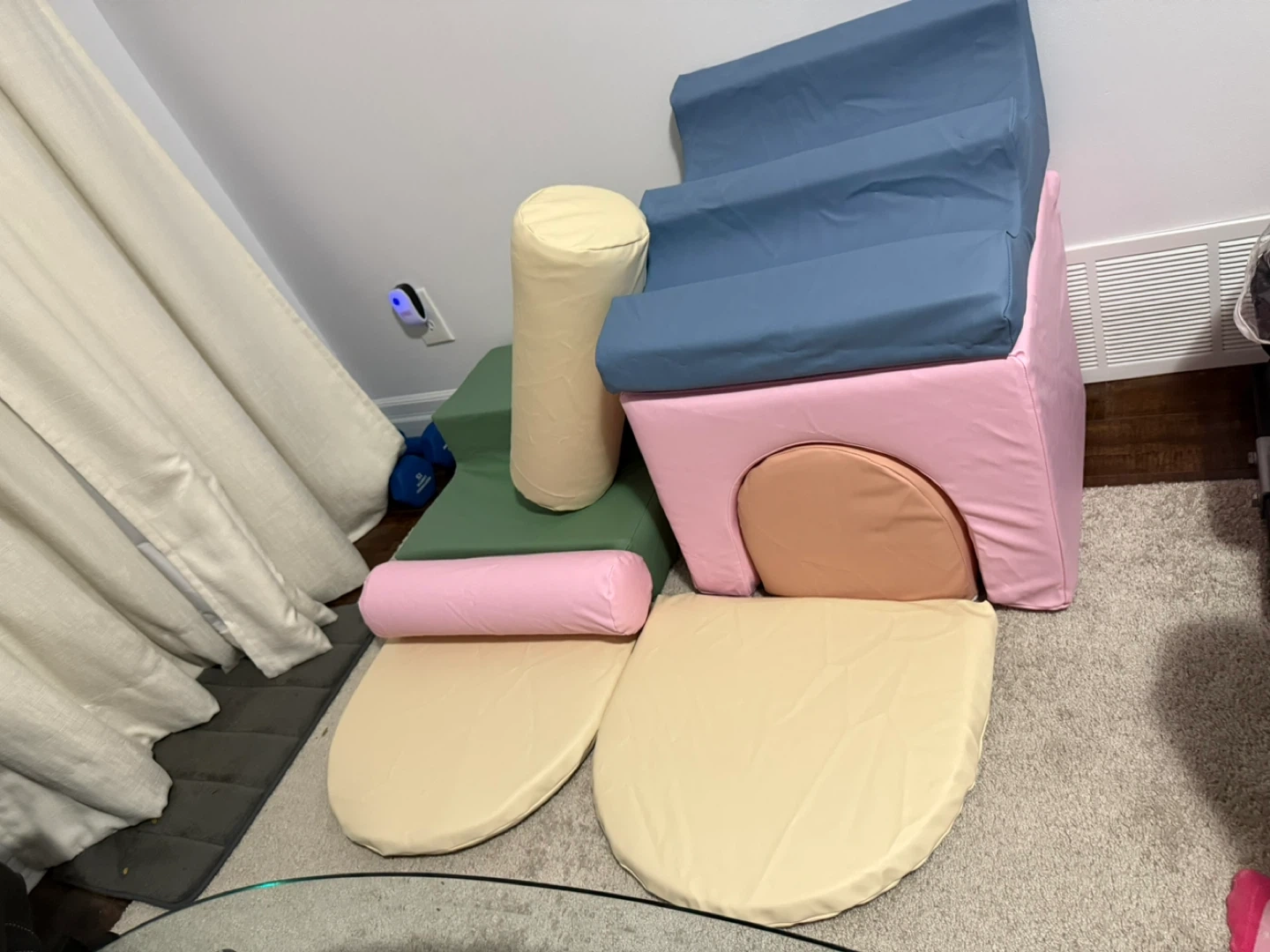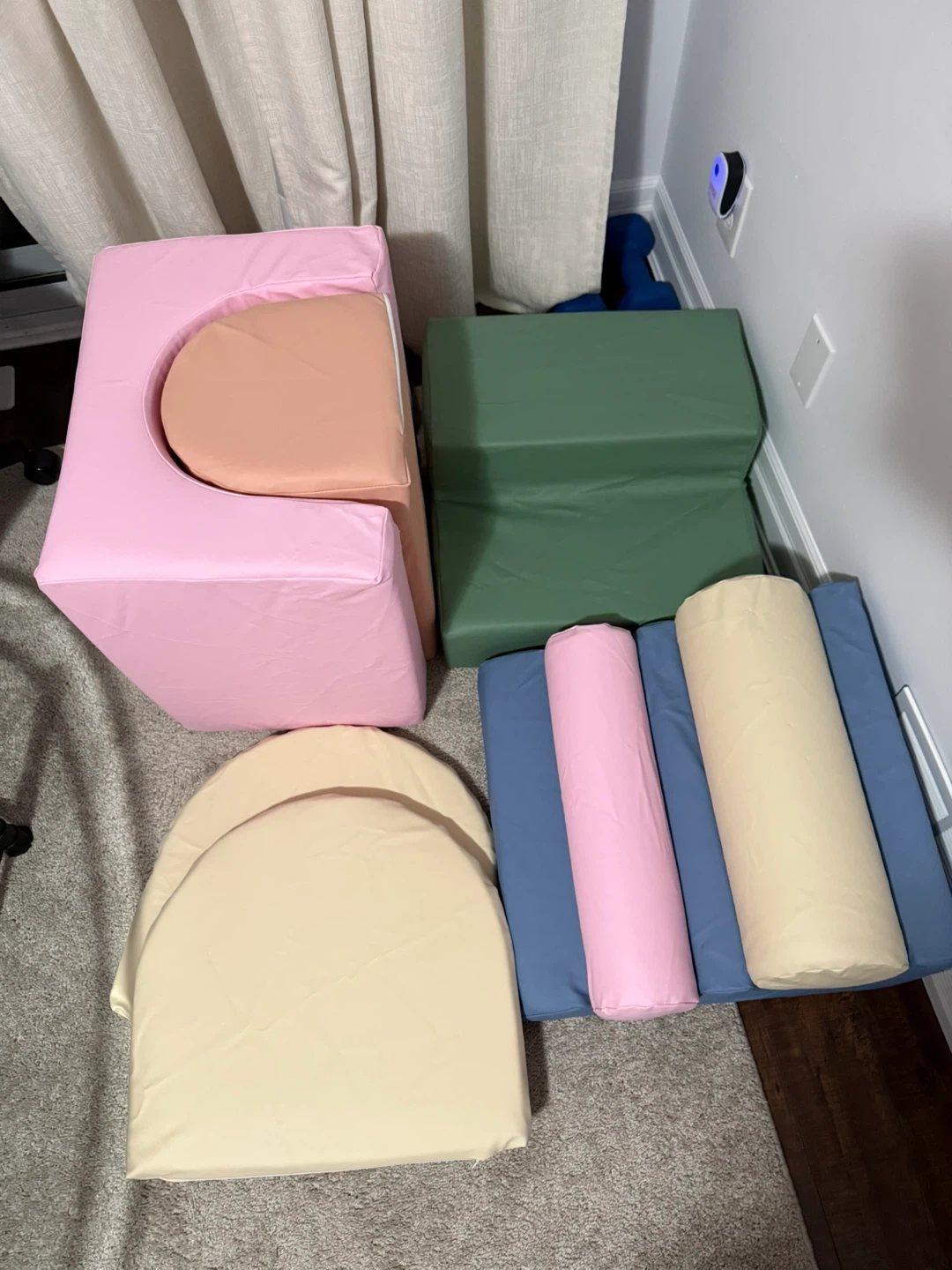 258-Piece Foam Climbing Blocks Set for Toddlers Condition: Brand new Colorful soft foam climbing and play set — perfect for toddlers (ages 1-3). Encourages creativity, coordination, and active play indoors. Can be arranged in multiple fun combinations! 📦 Includes 8 pieces: stairs, tunnel, arch, cylinder, ramps, and soft mats. 🎨 Color: Pastel “Lightweight” set (pink, blue, beige, green). 📏 Sizes: shown on photo — pieces approx. 19.7” × 19.5” × 9.8”. 🧽 Material: High-density foam with waterproof, easy-to-clean PU cover. ✨ Features: • Soft and safe for little ones 🤍 • Multiple configurations for endless play 🧩 • Helps develop balance and motor skills • Wipeable and lightweight 💲 Price: $160 🆕 Amazon price: $214.66 📍 Pickup in Waterloo