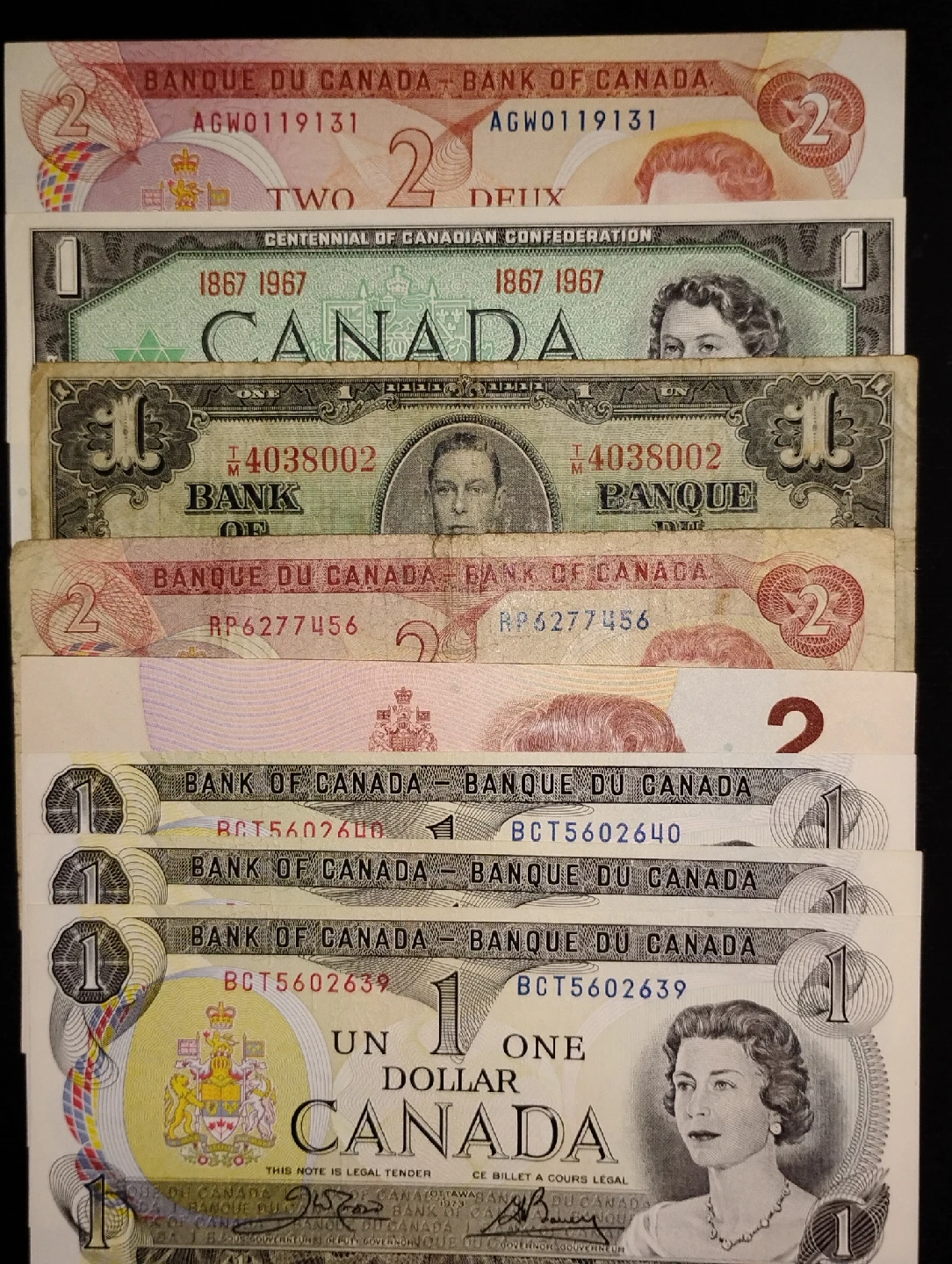 301Selling a collection of Canadian bank notes. Includes $1 and $2 bills. Great for collectors!