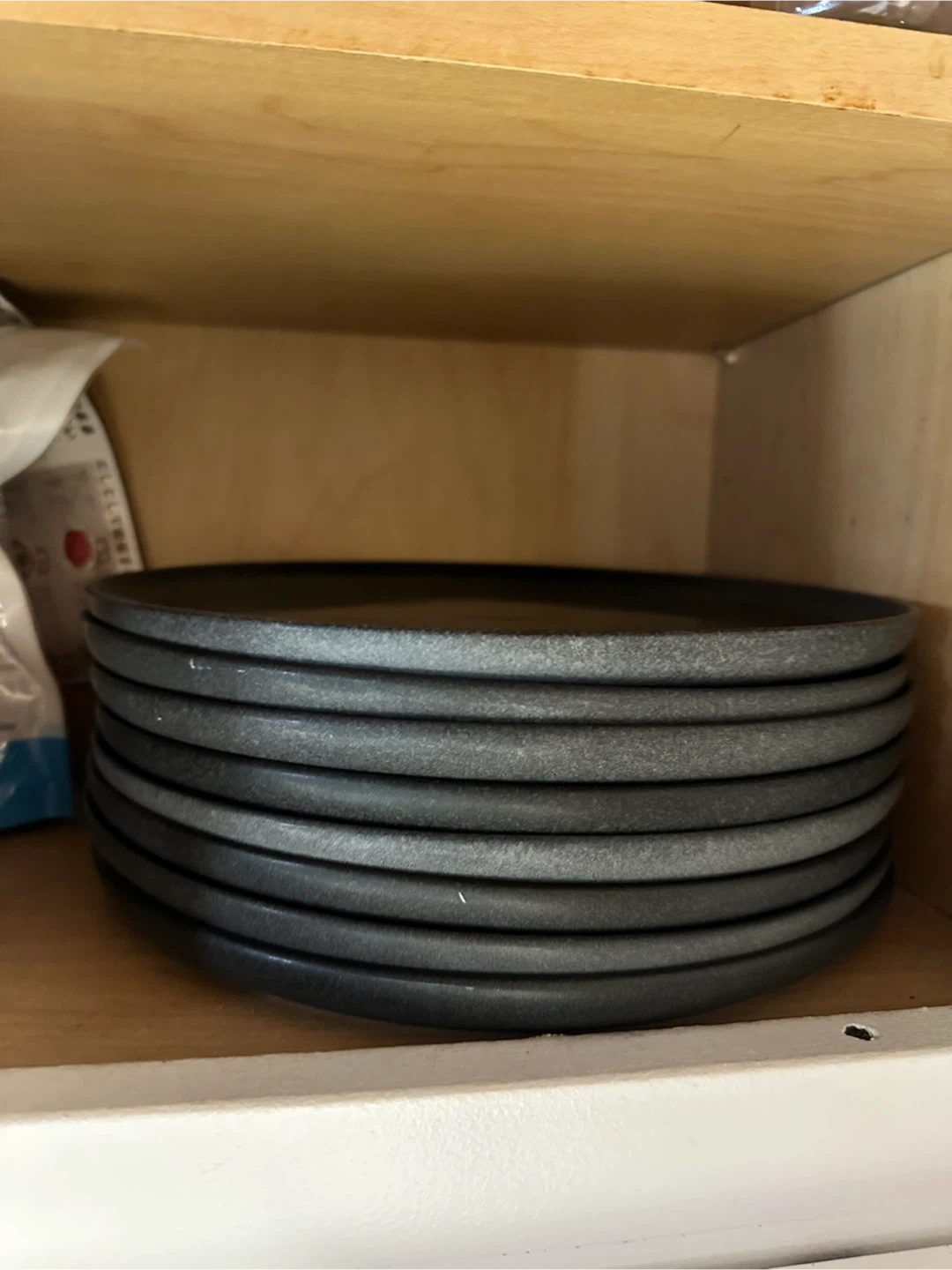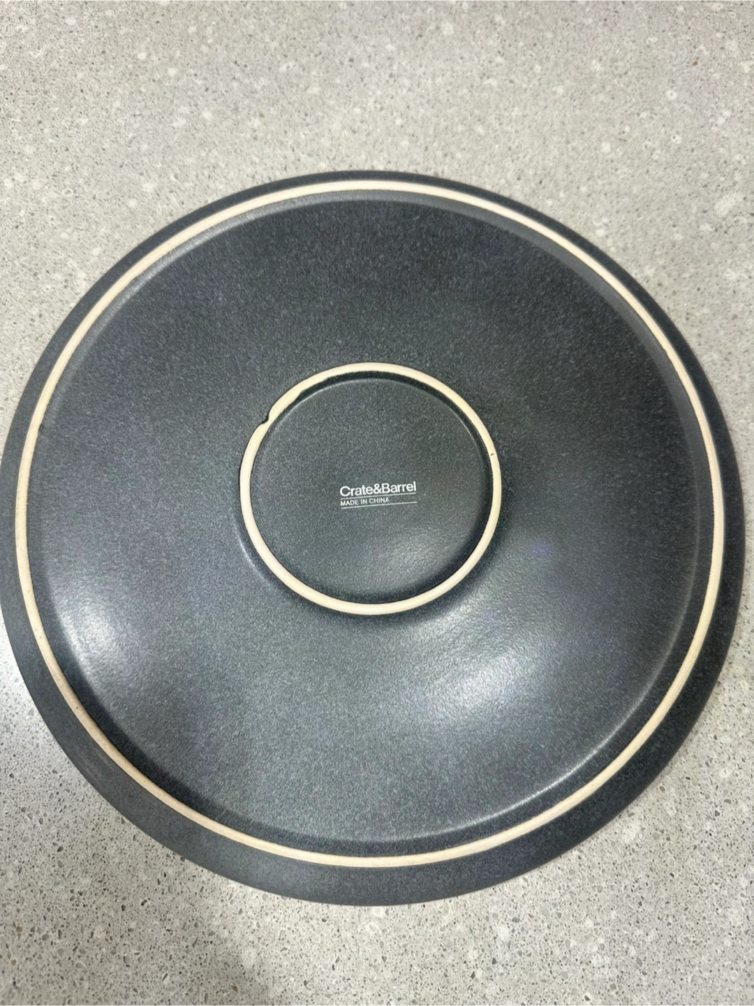Selling set of 8 Crate & Barrel dinner plates in matte black. It's in great condition.