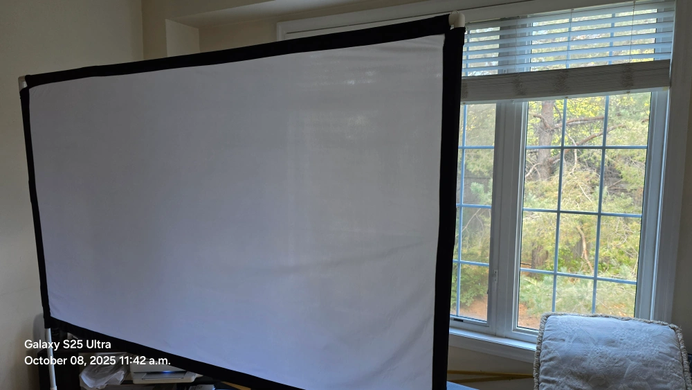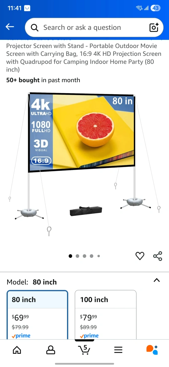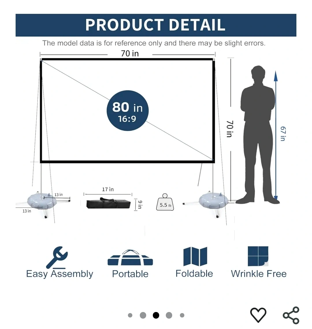 Selling an 80-inch projector screen that's in great shape! It comes with a stand and a convenient carrying bag, making it super portable. Perfect for indoor movie nights or outdoor camping adventures. It's easy to assemble, foldable, and wrinkle-free. The screen supports 16:9 4K HD projection. Originally bought for $69.99