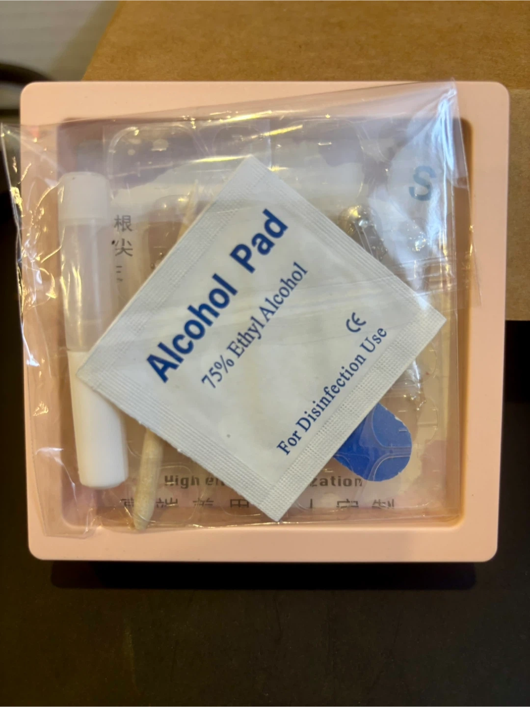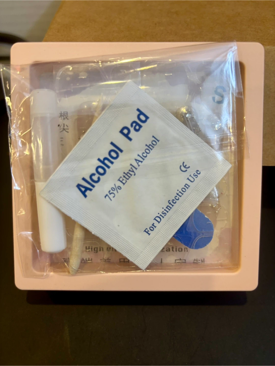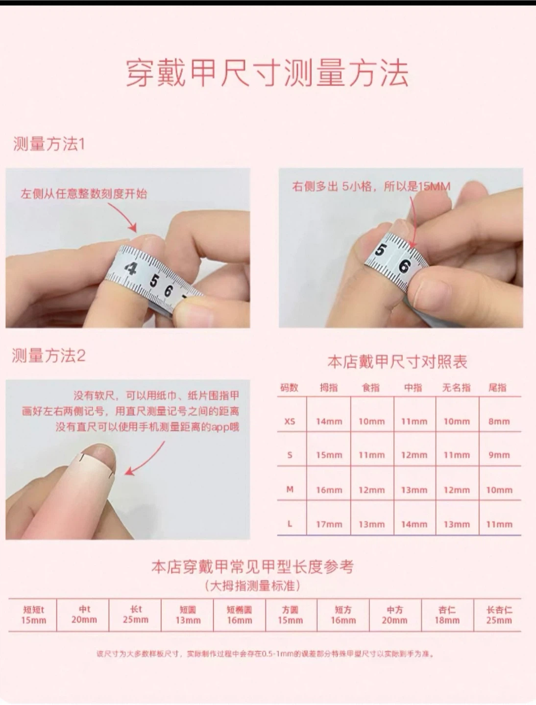 Selling a set of press-on nails in size S. These are high-end customized nails that are easy to apply with glue or gel. Includes an alcohol pad for disinfection use and other application tools. Perfect for a quick and stylish manicure!
