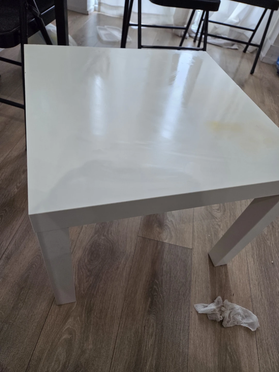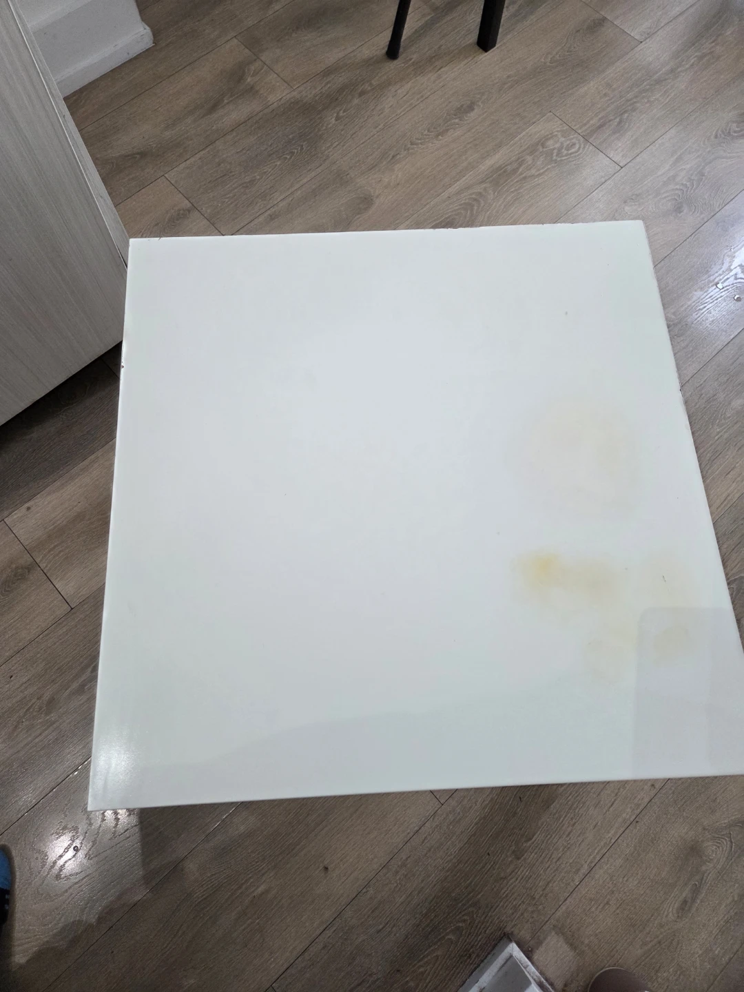 Selling a white side table. It's perfect for a small space or as an accent piece in any room. It has some minor wear and tear, but it's still in good condition and ready for a new home