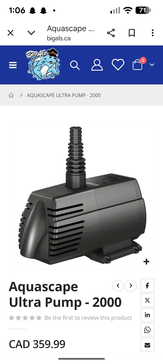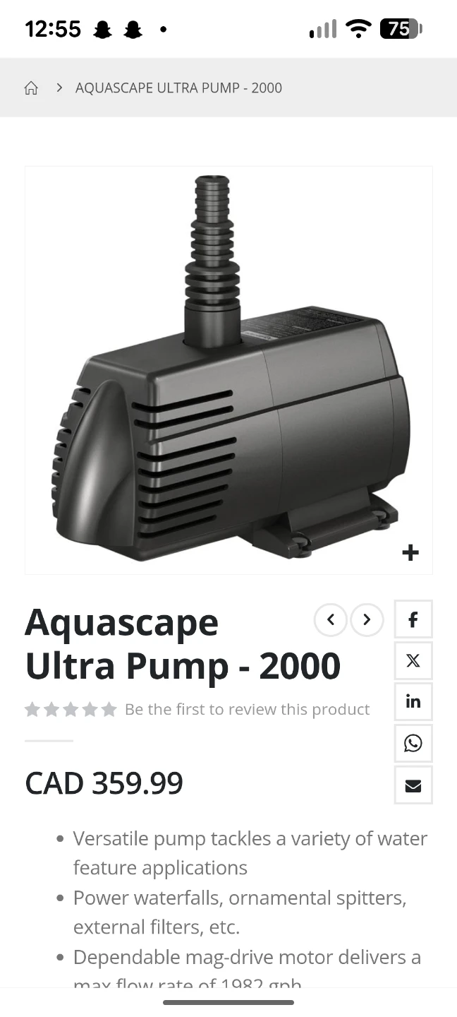 1 / 61 / 6Buy & SellAquascape Ultra Pump - 2000Aquascape Ultra Pump - 2000$130Selling an Aquascape Ultra Pump - 2000. This pump is perfect for aquascaping and water features. Retails for $359.99.ConditionLike newWHERE TO MEET235 gosford blvdView MapSELLERverifiedstevenBlack Creek17211 reviews0 chats·0 favorites·13 viewsSEND CHAT TO SELLERHi steven! I’m interested in your listing.Hi steven! I’m interested in your listing.Get the Karrot app to chatSign In to chat