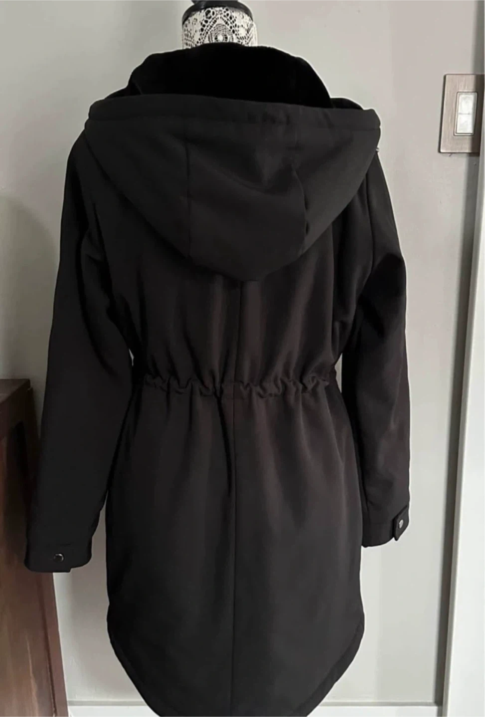 Very warm with velour lined hood.