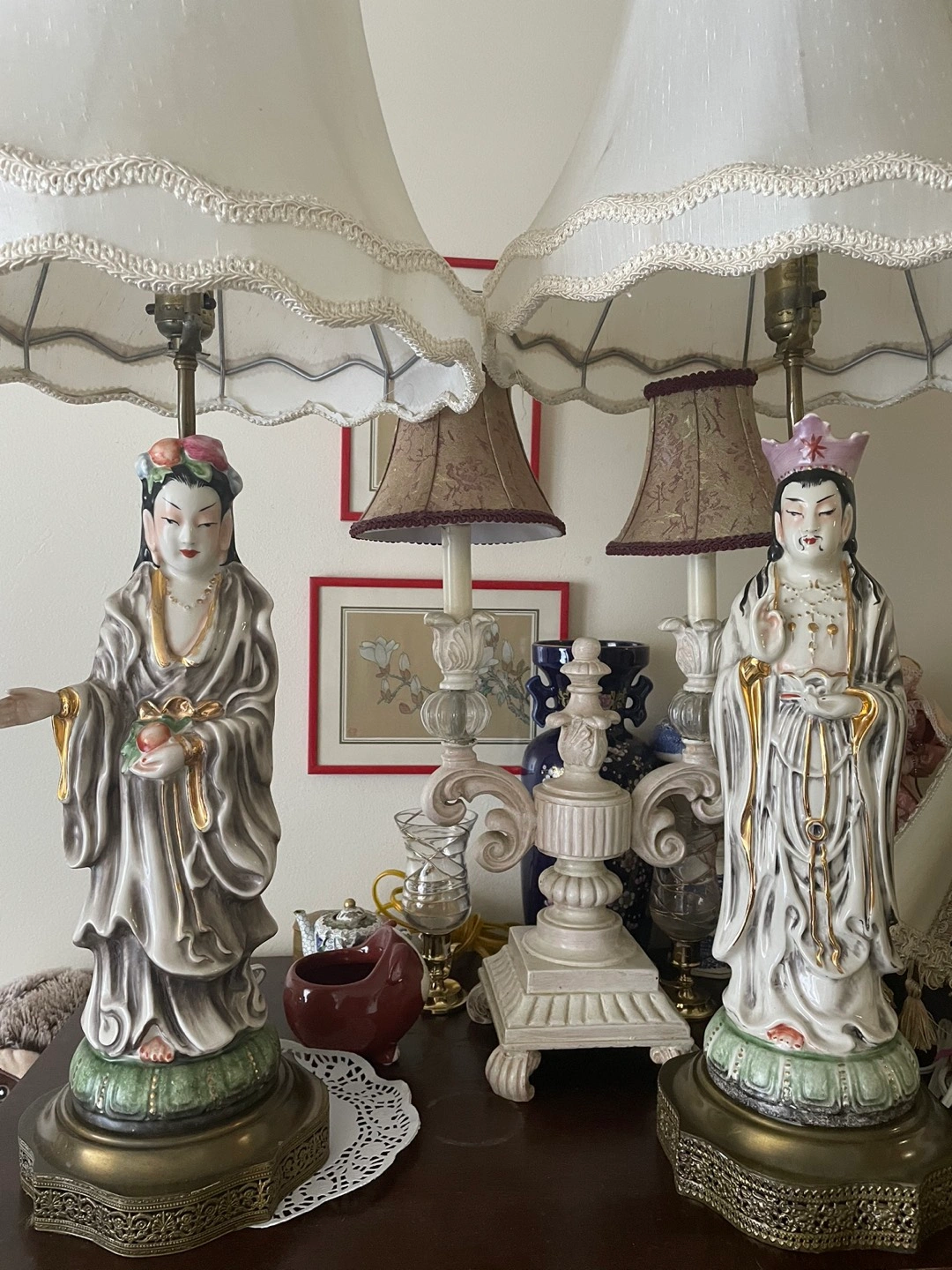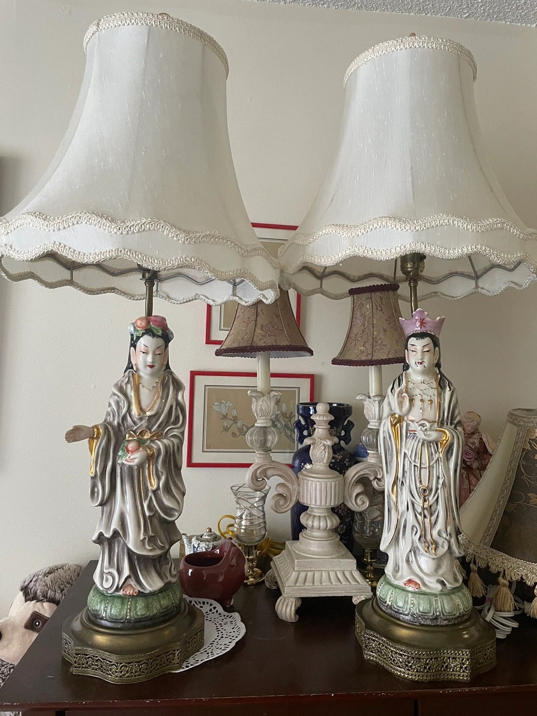 In great condition, except that one lamp has damage on the top, but it can be rotated so to hide it. Otherwise in great condition, collectables and perfect pieces for decoration