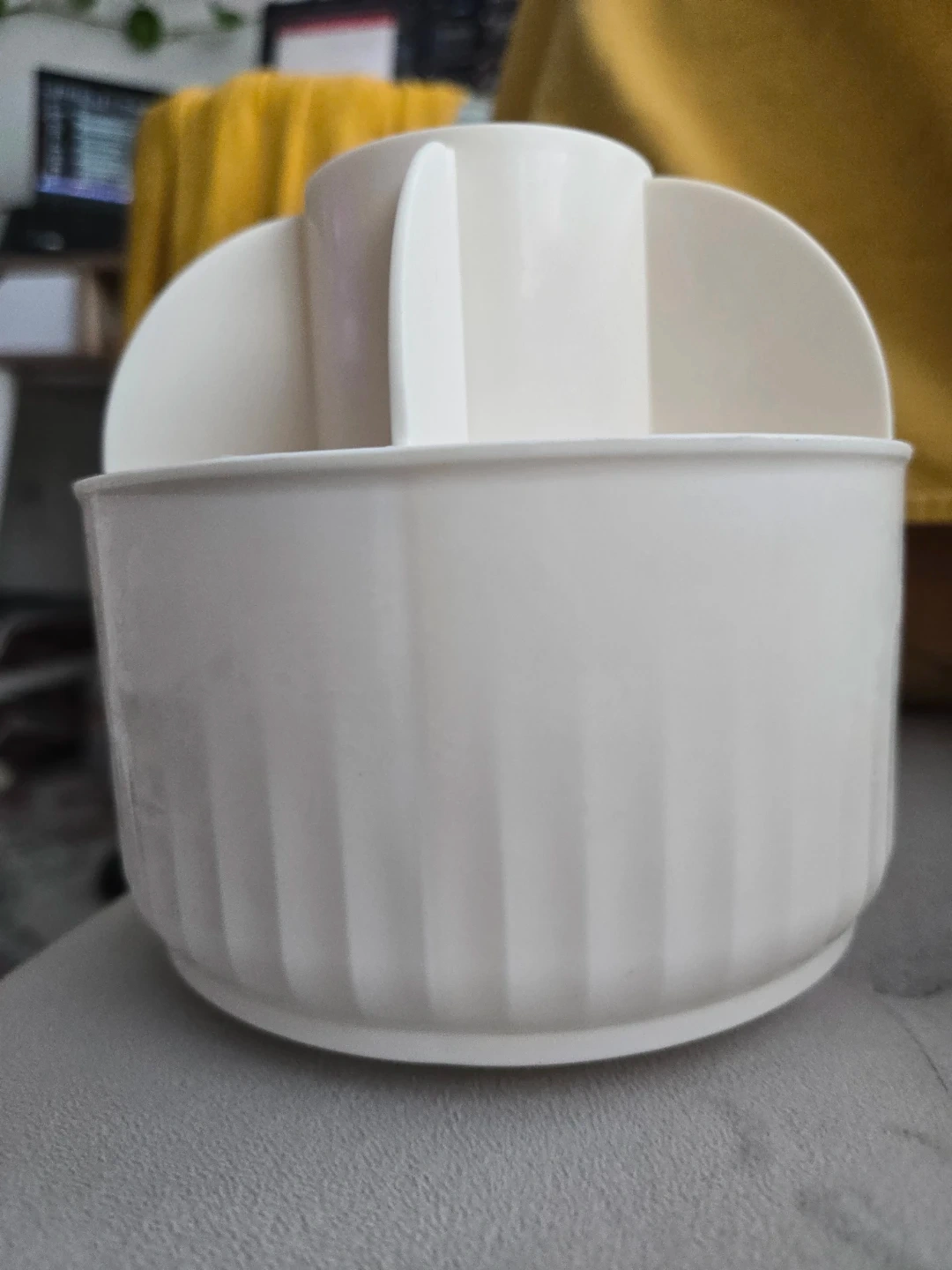 Here's a handy white plastic utensil organizer! It's perfect for keeping your kitchen drawers tidy or for organizing art supplies. It's in great shape and ready for a new home