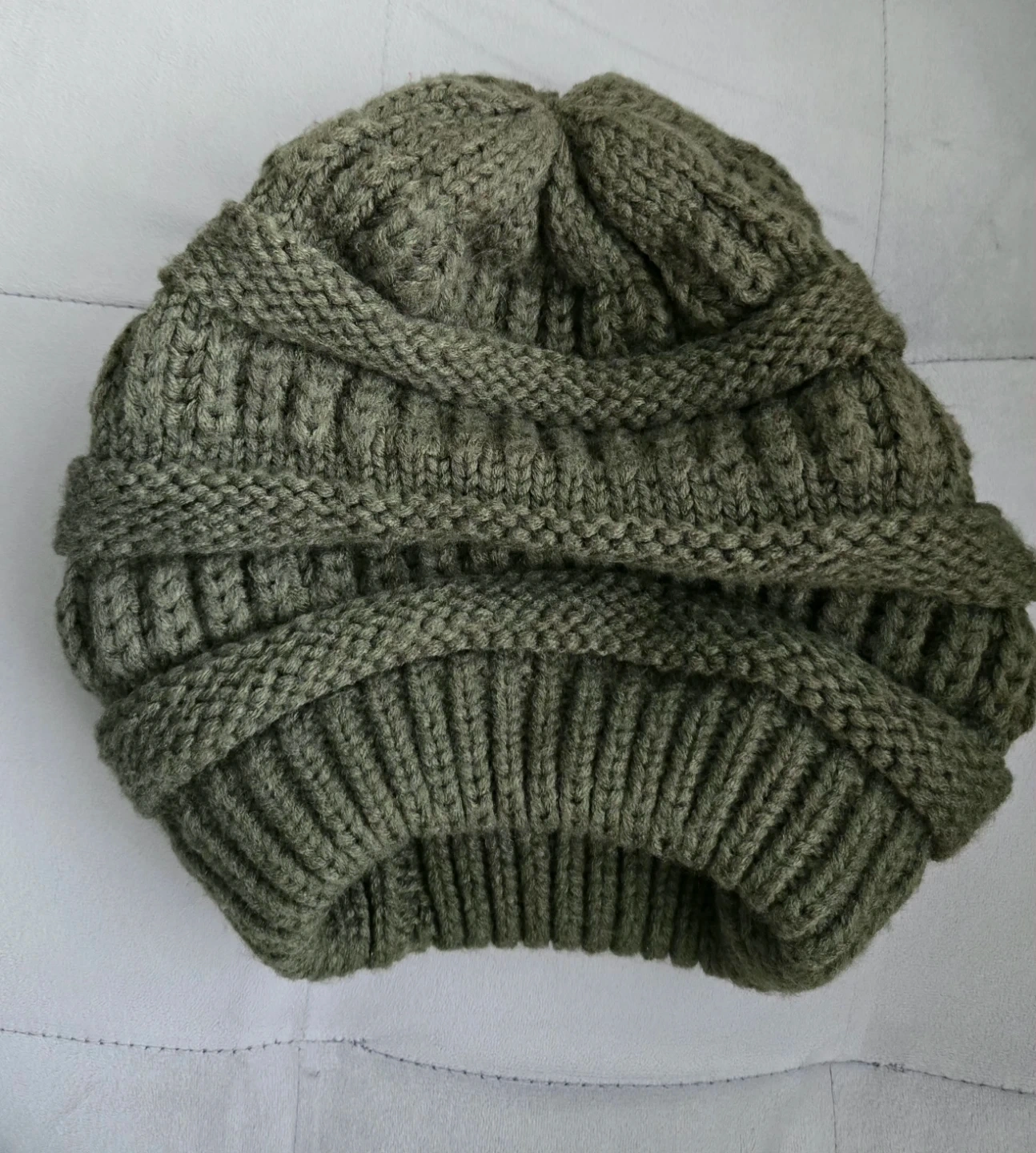 Olive Green Knit Beanie Hat