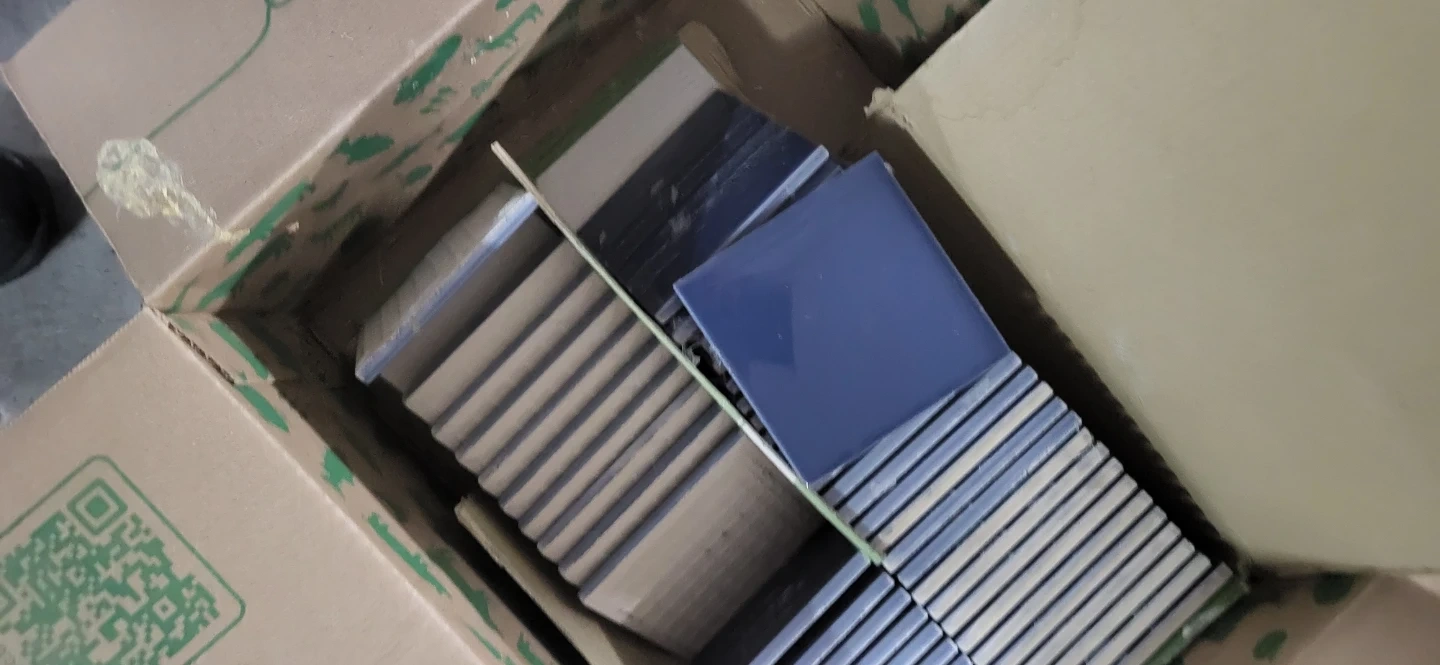 Selling 3 boxes x 50 ceramic tiles in blue. 150 tiles total. 4 in X 4 in square. They're in great condition and ready for your next project!