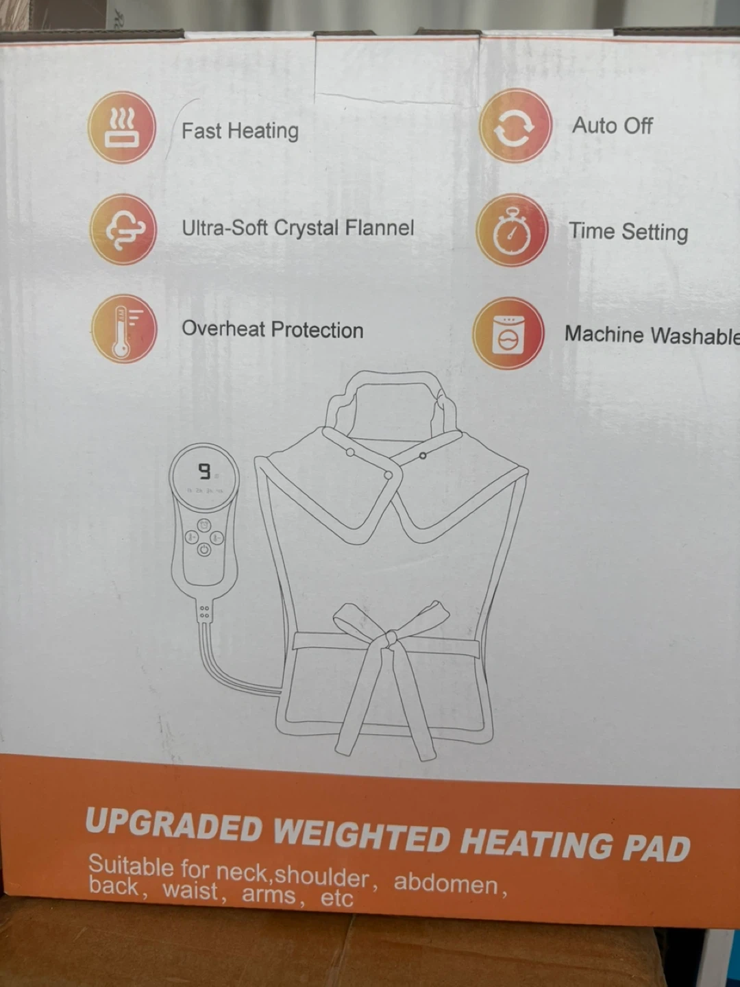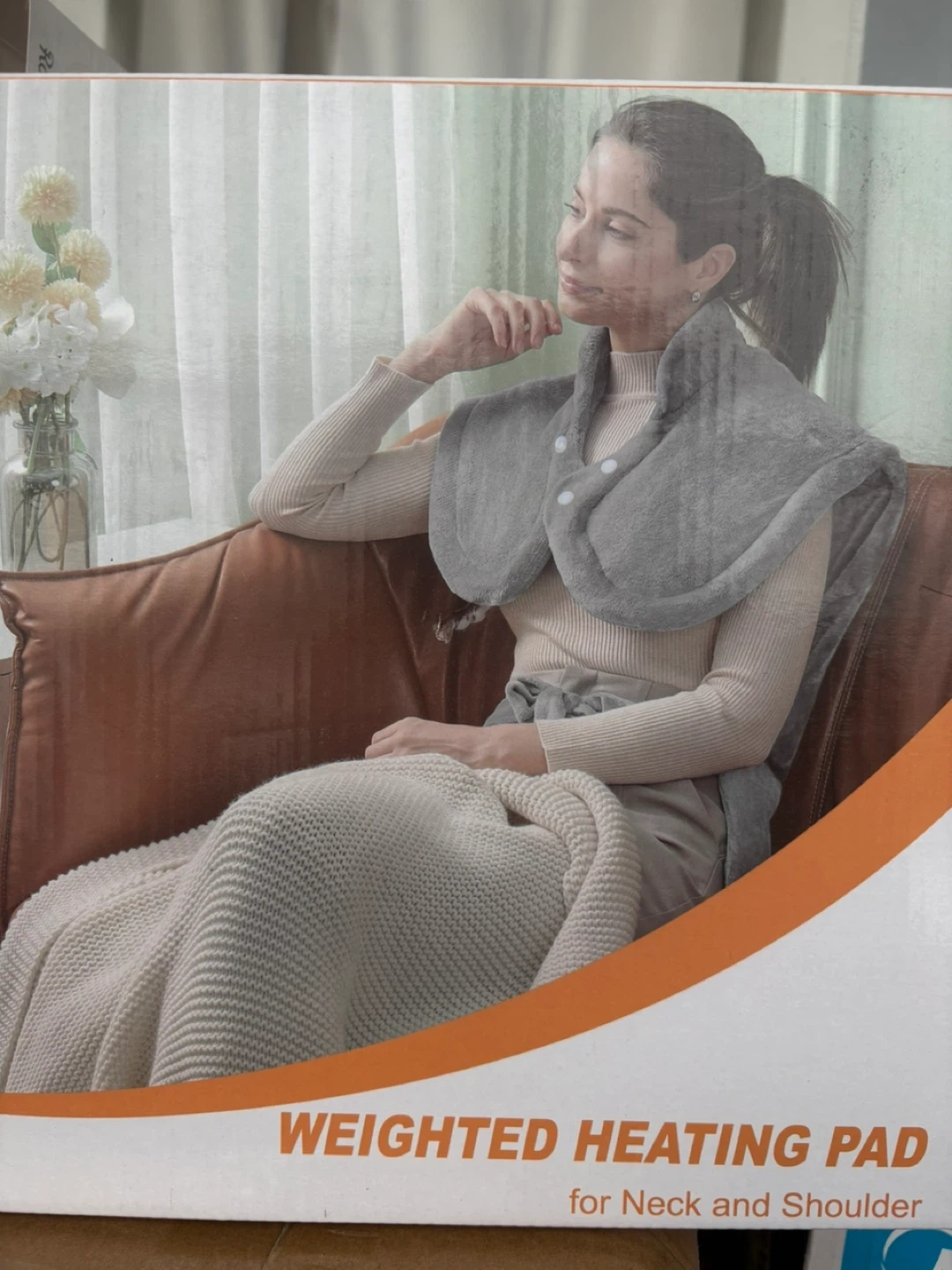 I'm selling a weighted heating pad perfect for neck and shoulder relaxation! It features fast heating and an auto-off function for safety. The ultra-soft crystal flannel material is machine washable, and there's also a time setting and overheat protection for added convenience. It is suitable for neck, shoulder, back, waist, arms, abdomen, etc