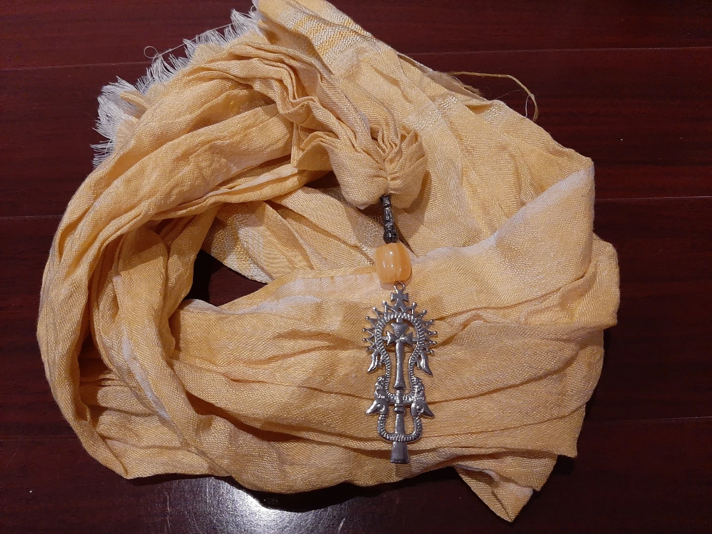 Ethiopian Yellow Scarf with Silver Pendant