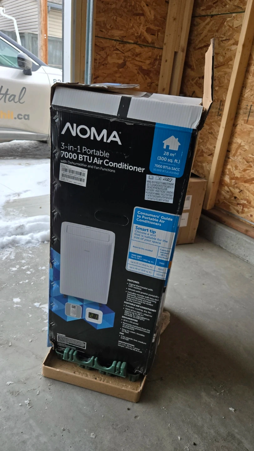 Selling a NOMA 3-in-1 portable air conditioner! This unit features 7000 BTU cooling capacity. It also works as a dehumidifier and fan, making it super versatile. It's designed for rooms up to 28 square meters (300 sq ft). The box is included!