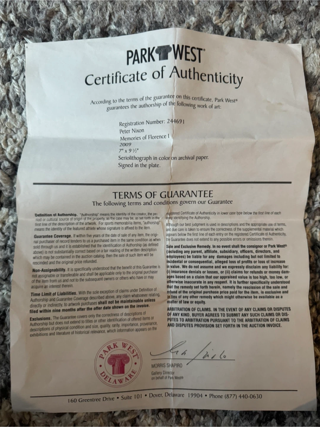 Comes with a Certificate of Authenticity