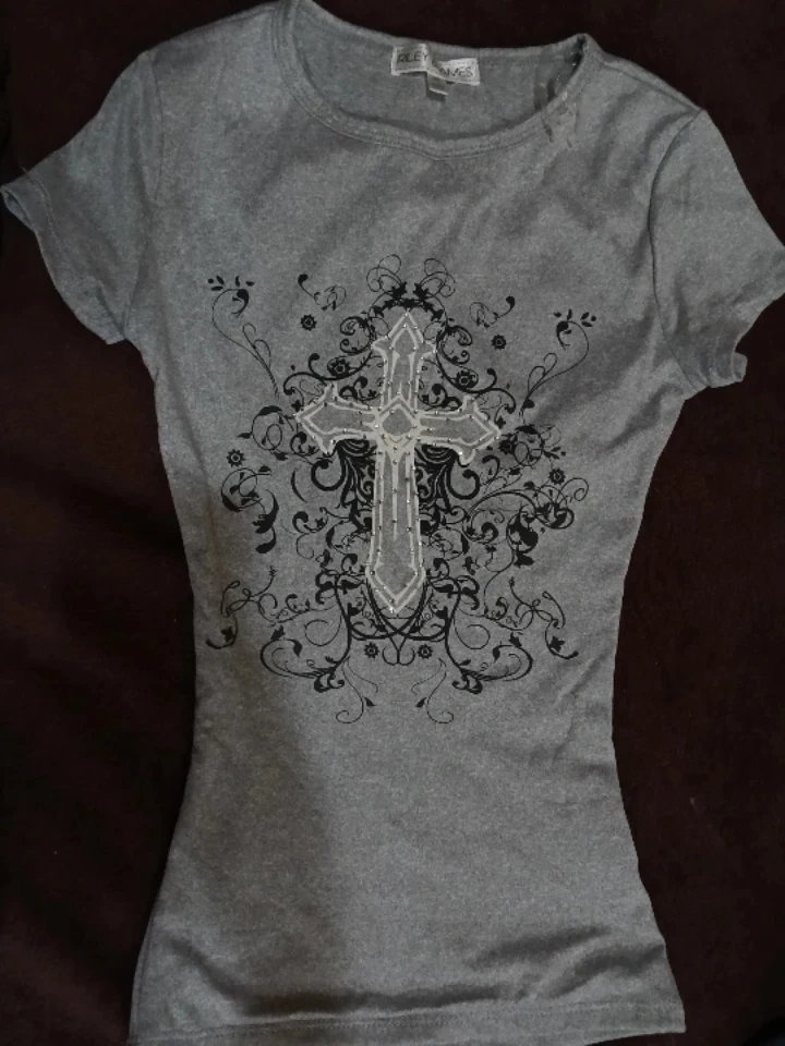 Selling a gray t-shirt from Riley & James in size XS. It features a unique design on the front. The shirt is in good condition and ready for a new owner!