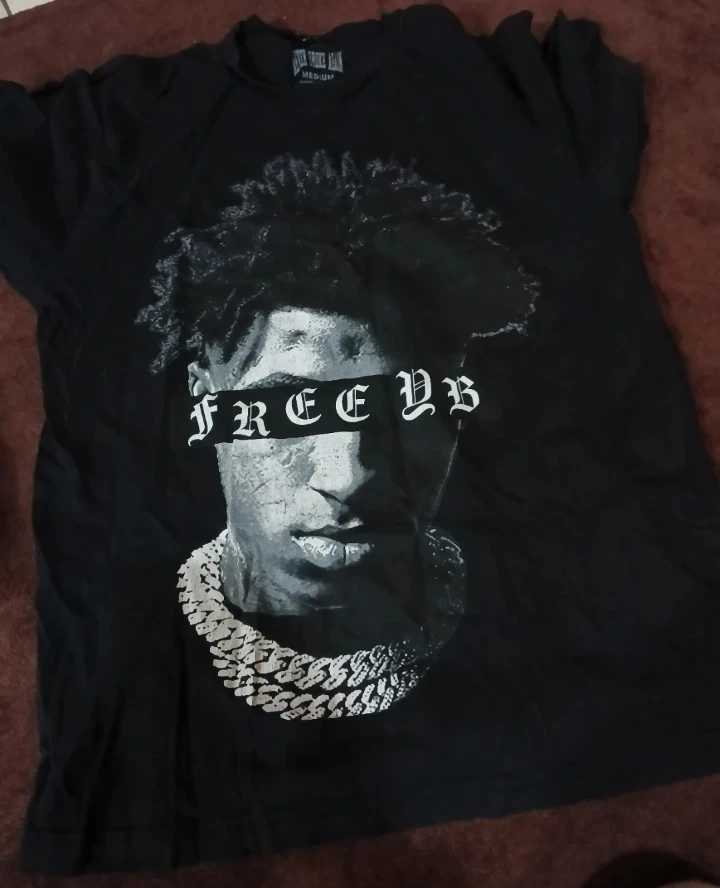 Selling a Never Broke Again t-shirt in a size medium. It's black and features a graphic print. Feel free to reach out if you're interested!
