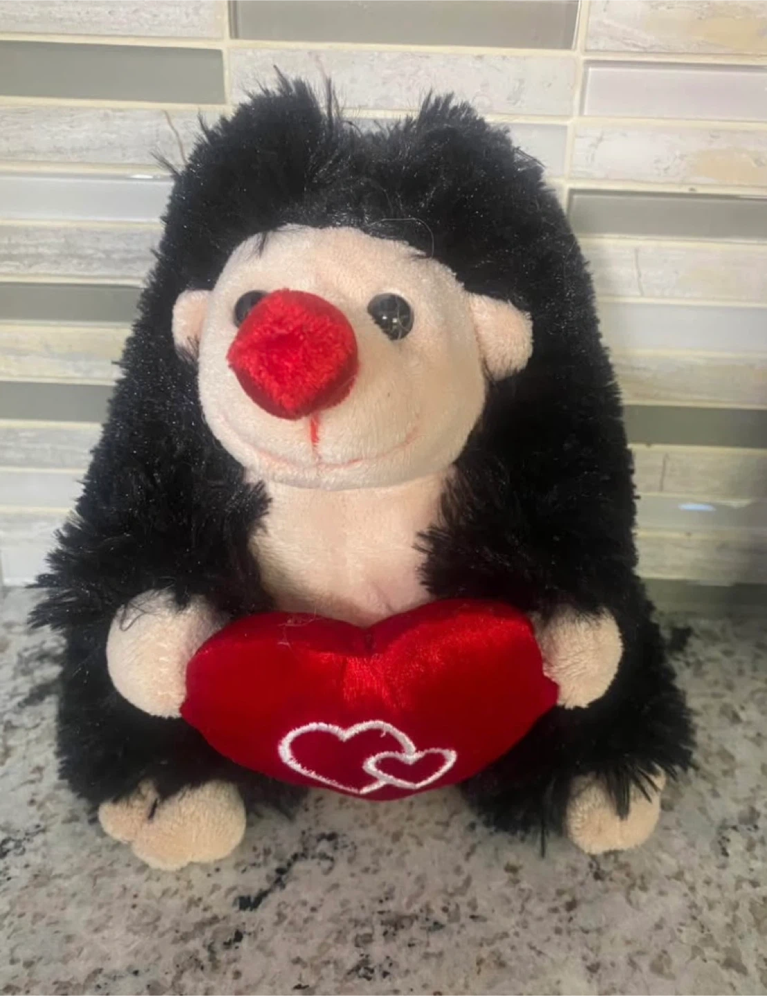 This adorable hedgehog plush is looking for a new home! It's in new condition and ready to be cuddled. It would make a perfect gift for a child or anyone who loves hedgehogs.