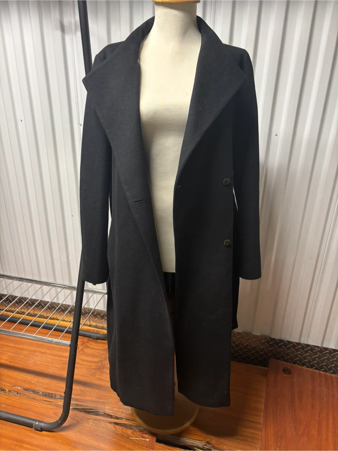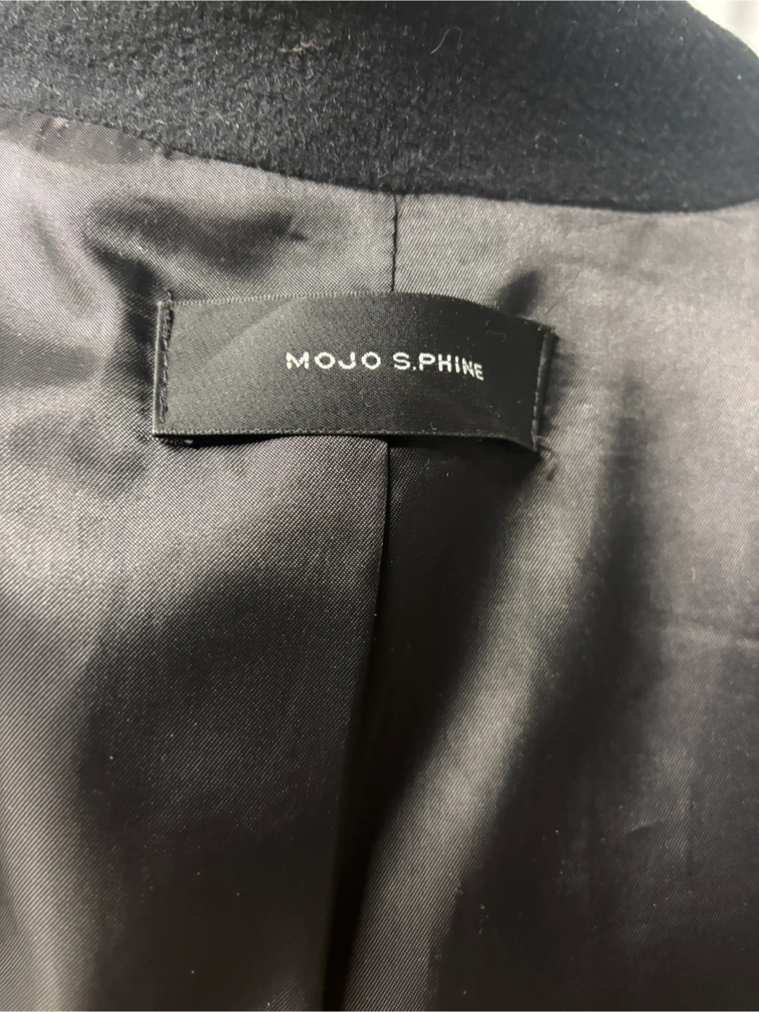 Selling a MOJO S.PHINE black wool coat in size L! Made in Korea with 100% fabric wool. Perfect for keeping warm and stylish during the colder months
