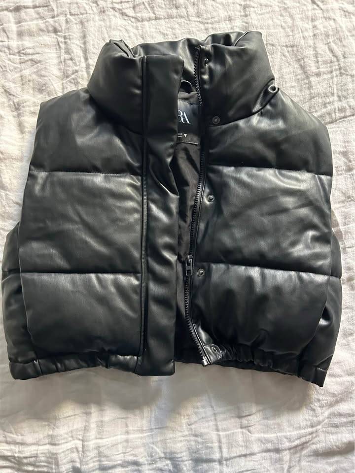 Zara Puffer Faux Leather Cropped Vest (size small)