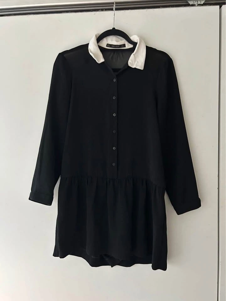 Zara Basic. Size small, good for a size 4-6. In black with a white collar, the back is a thin mesh to show off your back! Great for holiday parties, super cute and elevated. In good condition, no imperfections, tears or pulls.