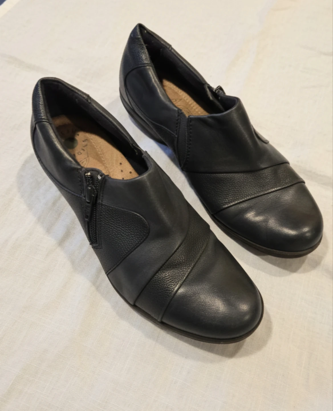 Selling a pair of Earth Origins black leather shoes in size 10. They feature a stylish design and comfortable fit. Perfect for everyday wear