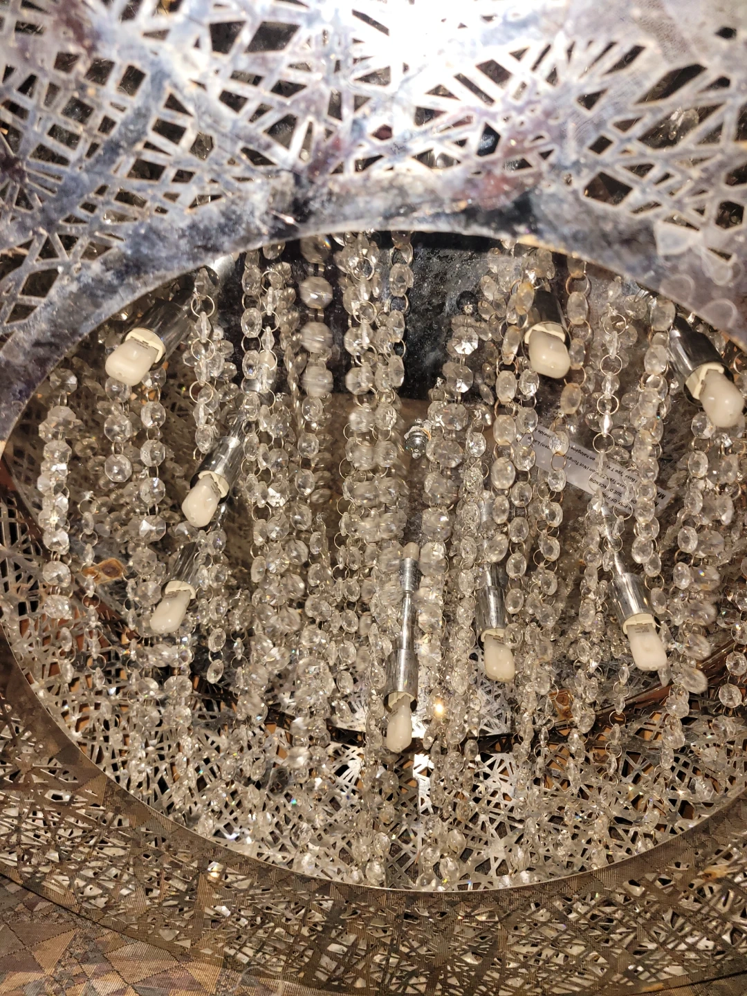 Selling a metal and crystal chandelier. It has a unique design and would be a great addition to any room. It is in good condition and ready to be installed