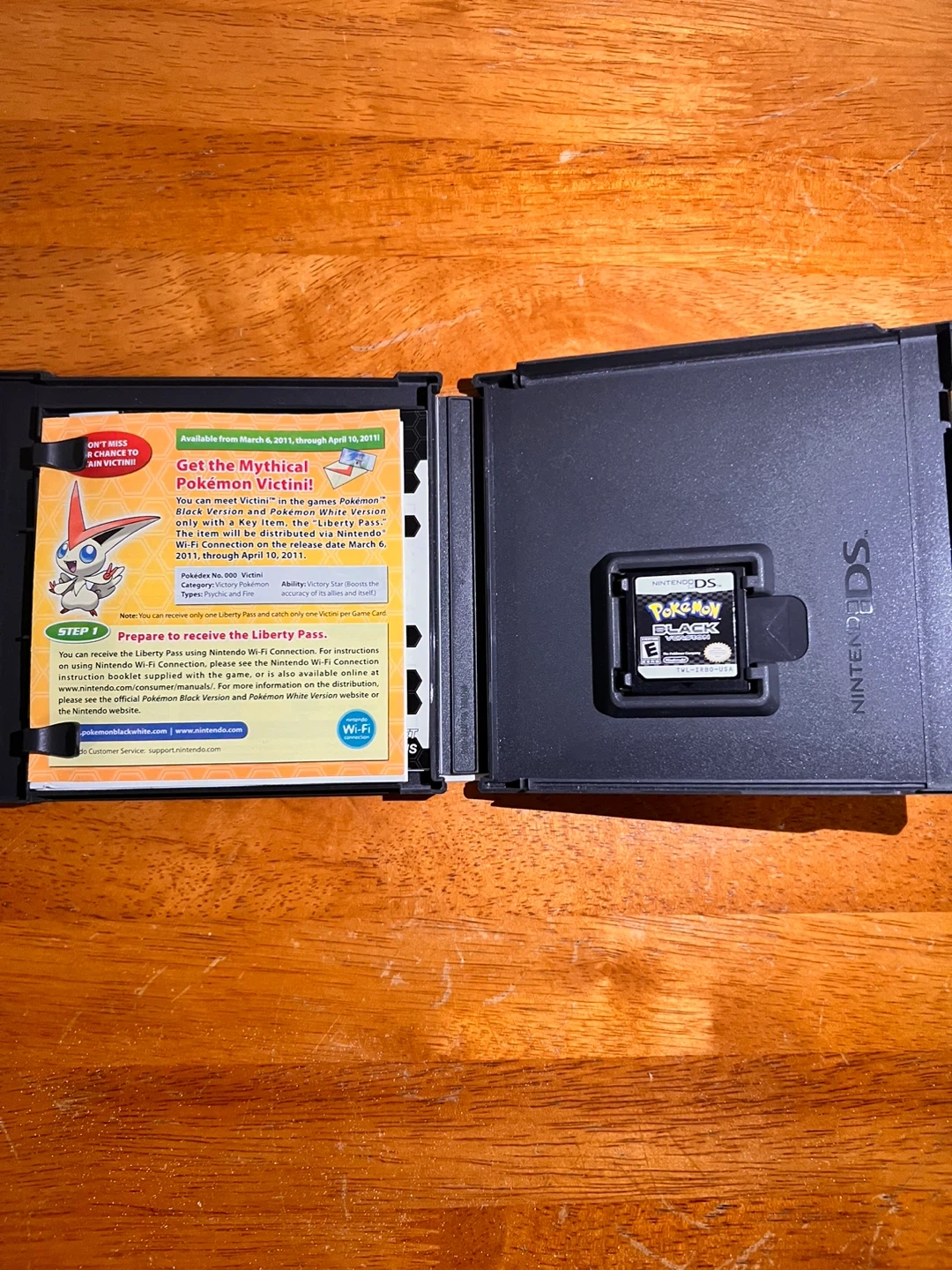 Selling Pokémon Black Version for the Nintendo DS! It’s complete in box down to the special promotion for the Pokemon Victini and in mint condition. Everything has been tested and is working flawlessly. Check out my other listings for more video games and collectibles.
