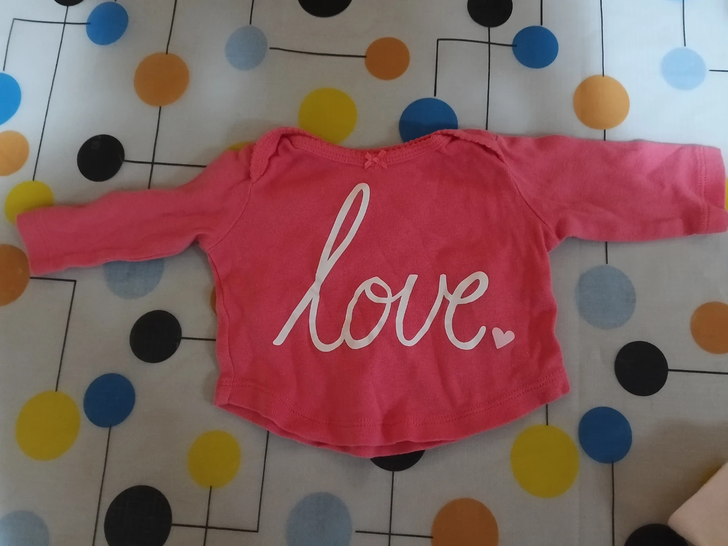 I have a cute Carter's newborn shirt for sale! The shirt is pink and has the word 'love' written on it in white. It's in great condition and ready for a new baby!