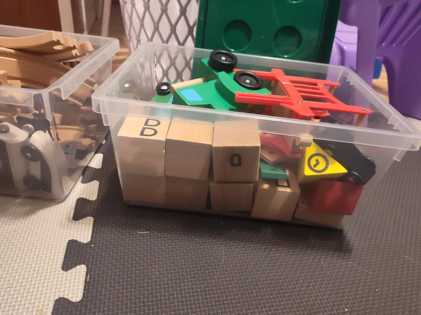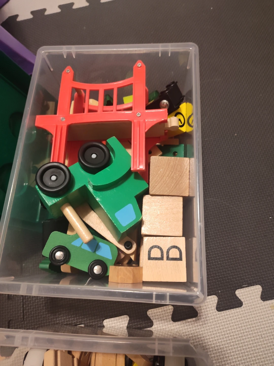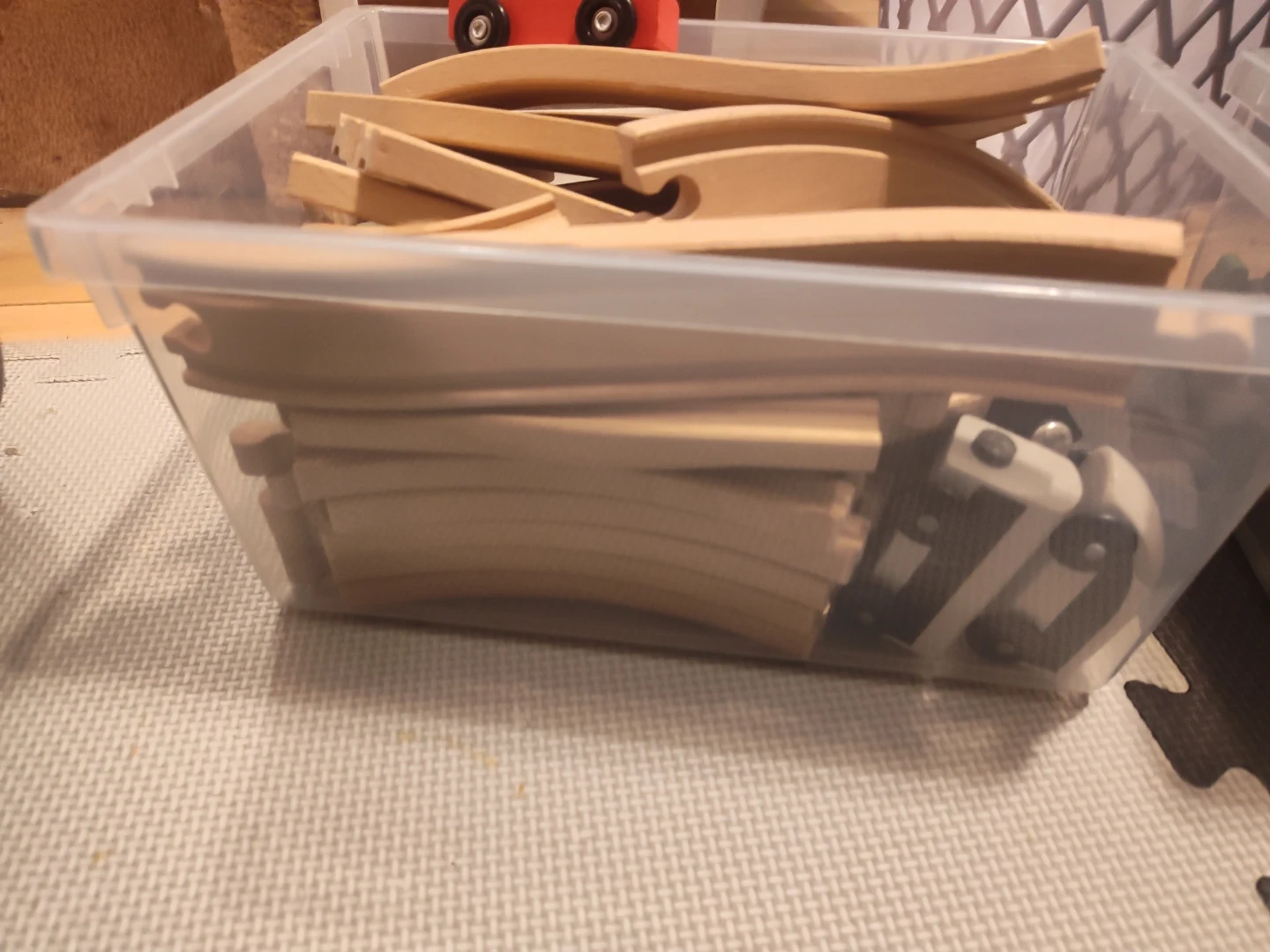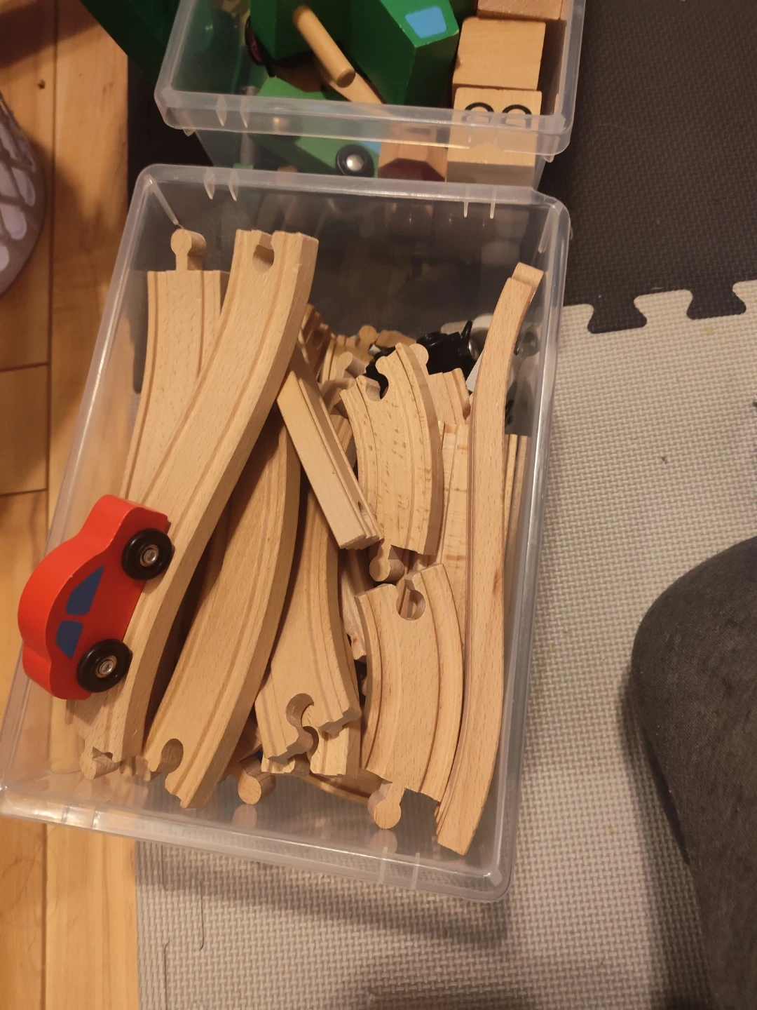 A collection of wooden train tracks and toy cars, perfect for creative play! Includes various track pieces and colourful wooden vehicles. Great for kids who love building and imaginative adventures
