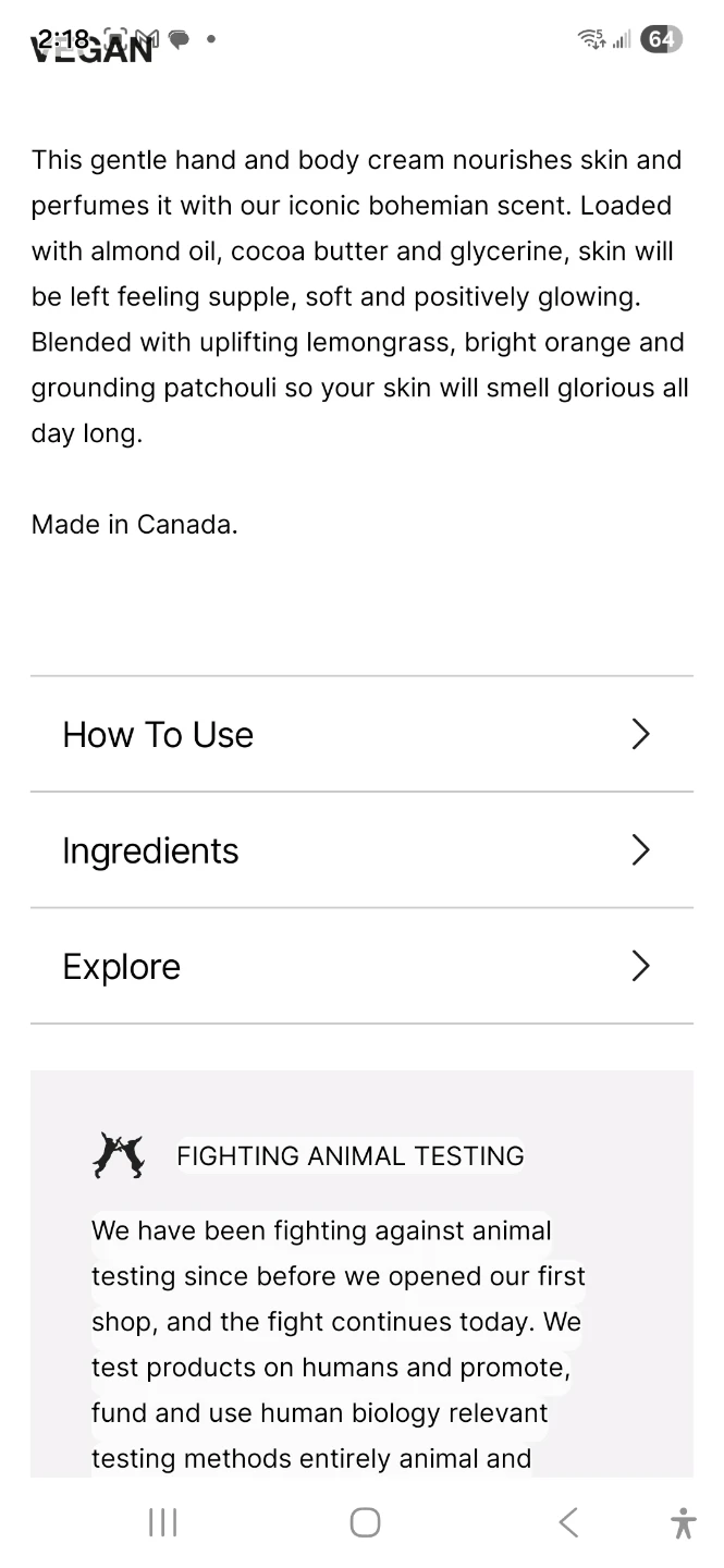 Karma Kream body lotion for soft skin! This gentle hand and body cream nourishes skin and perfumes it with an iconic bohemian scent. Loaded with almond oil, cocoa butter, and glycerine, skin will be left feeling supple, soft and positively glowing. Blended with uplifting lemongrass, bright orange and grounding patchouli so your skin will smell glorious all day long. Made in Canada