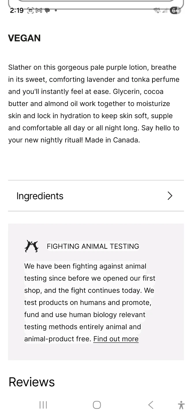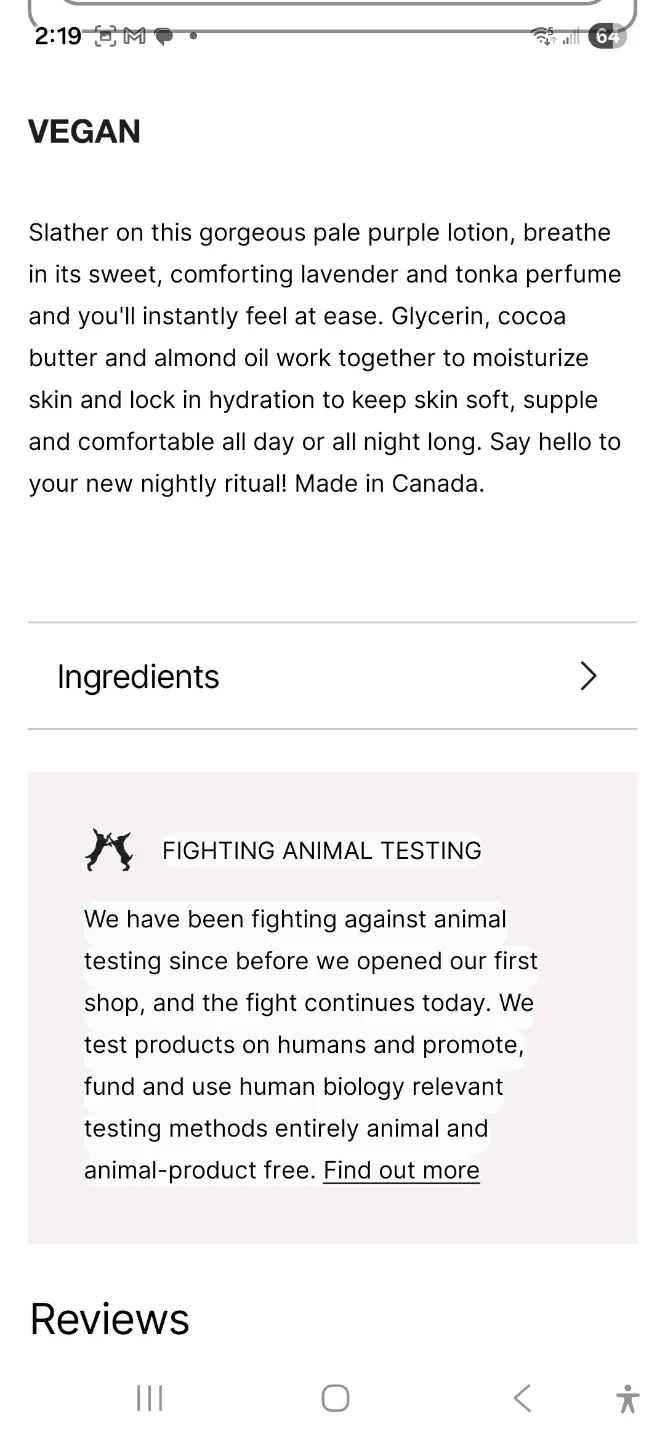 Selling a 90g container of Lush's Sleepy Body Lotion! It's a soothing and relaxing lavender lotion perfect for your nightly ritual. Made in Canada, it combines glycerin, cocoa butter, and almond oil to moisturize and lock in hydration. Slather on this gorgeous pale purple lotion for soft, supple, and comfortable skin all day or all night long