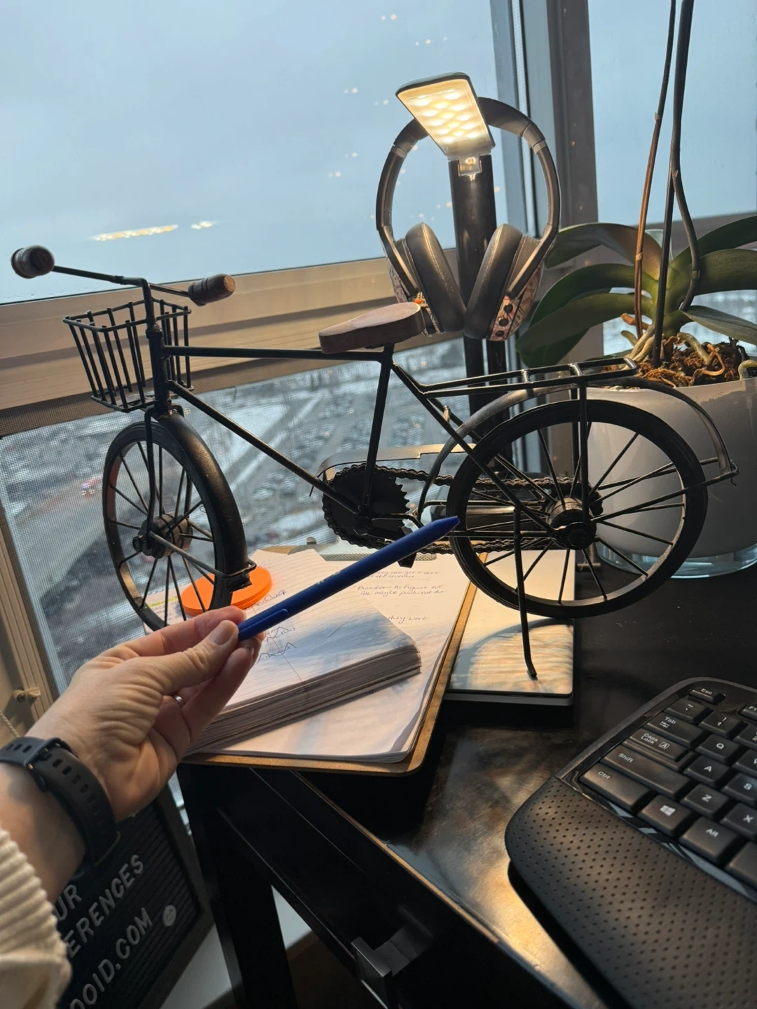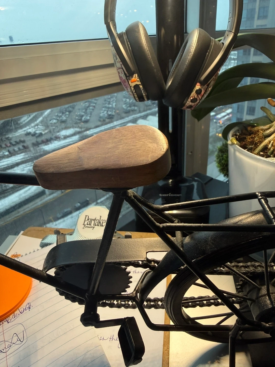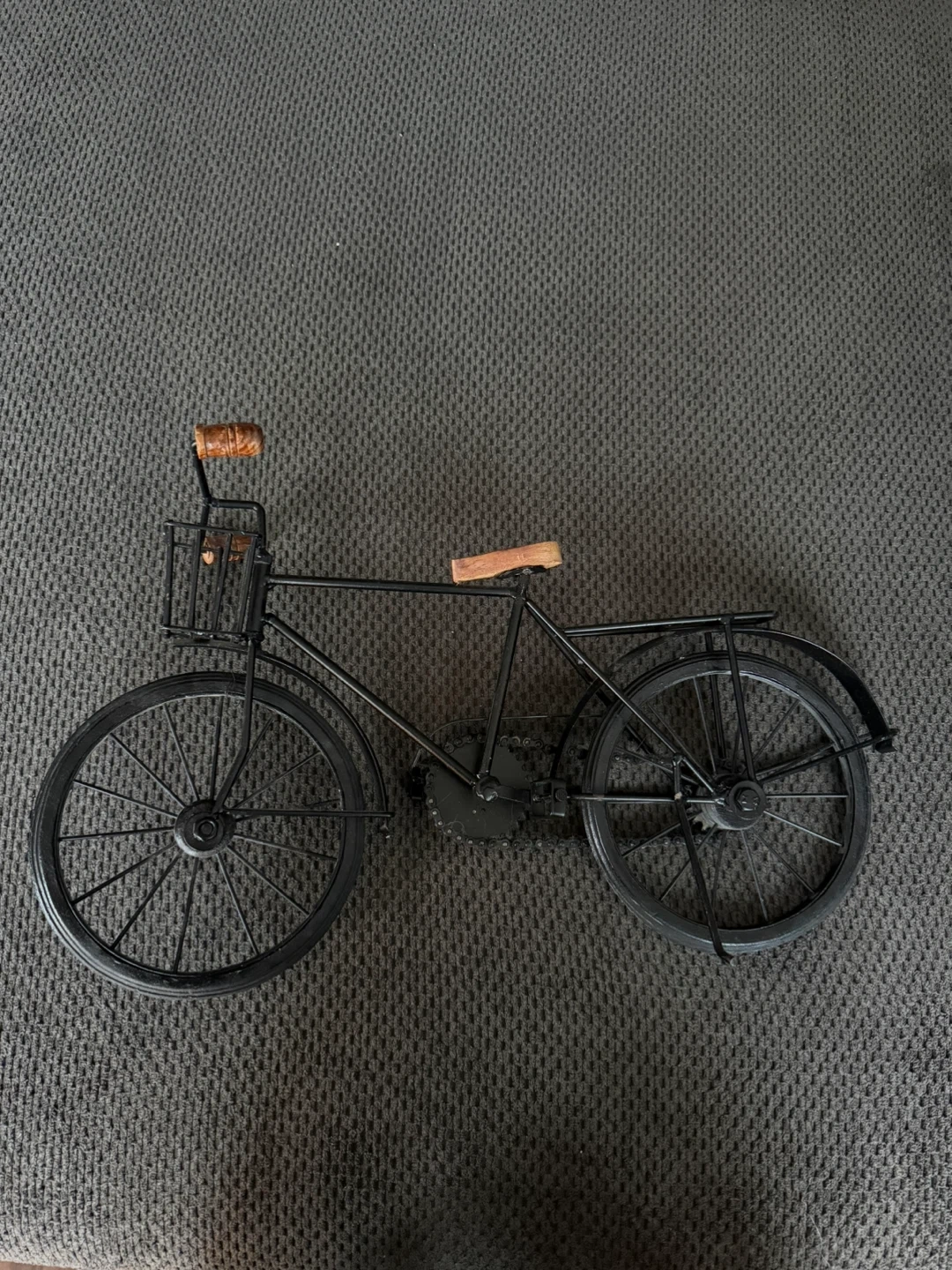 Decorative metal bicycle! This is a super unique piece. The bicycle has a basket and a wooden seat, adding to its charm. It's in excellent condition and ready to be displayed ;)
