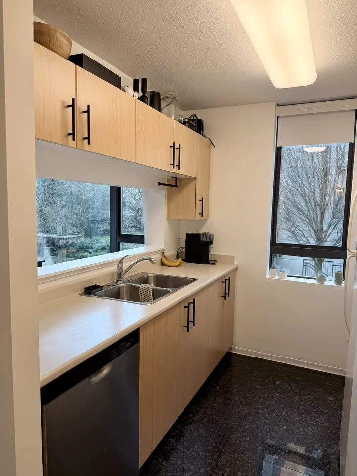 Bright, 2nd floor, 1 bedroom 1 bathroom corner apartment unit with lots of windows available for rent! Close to 3 different parks and unit faces quiet courtyard area and walkway. Freshly painted, close to all the necessities, and perfect for a couple, young professional or student.