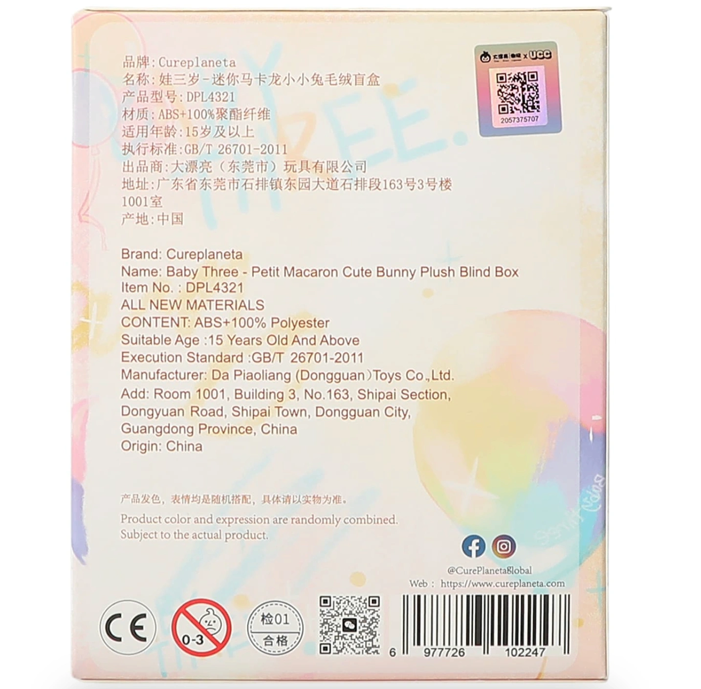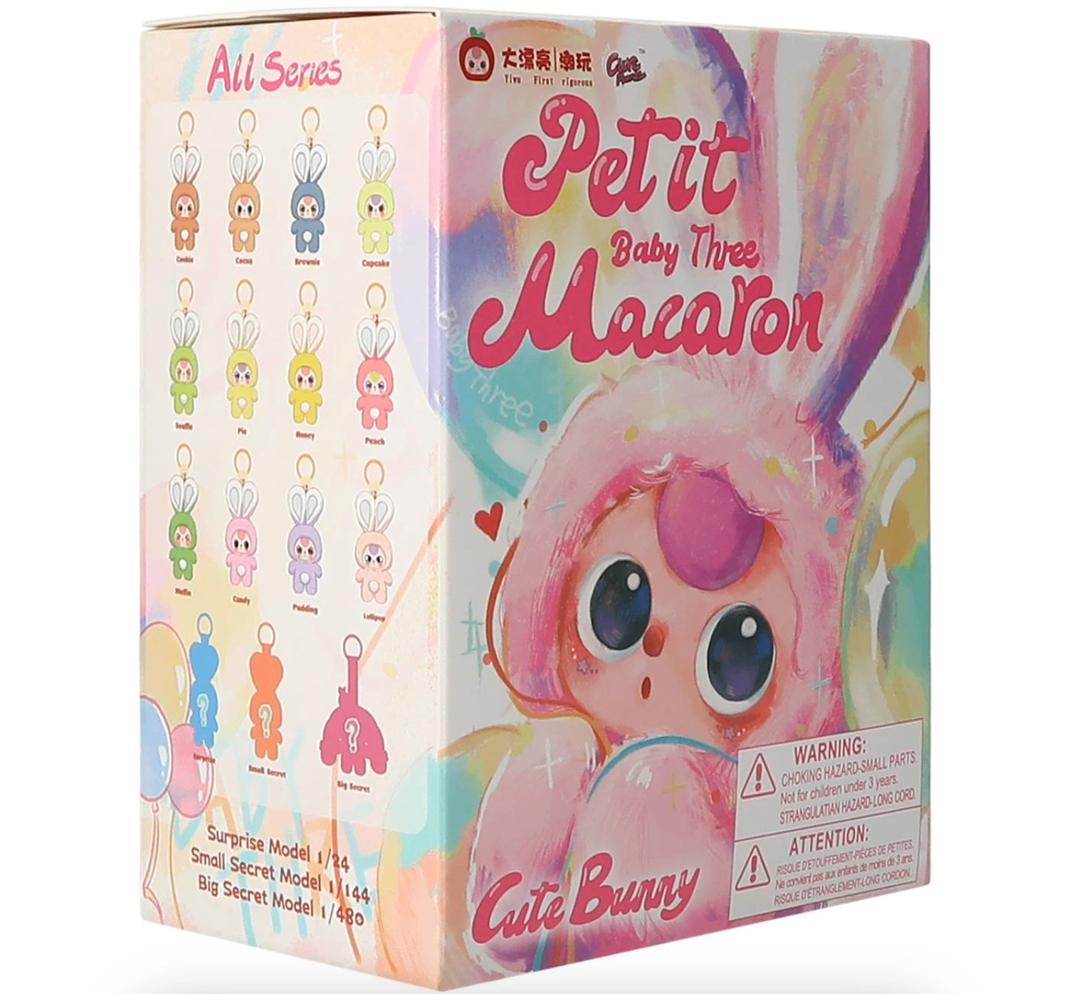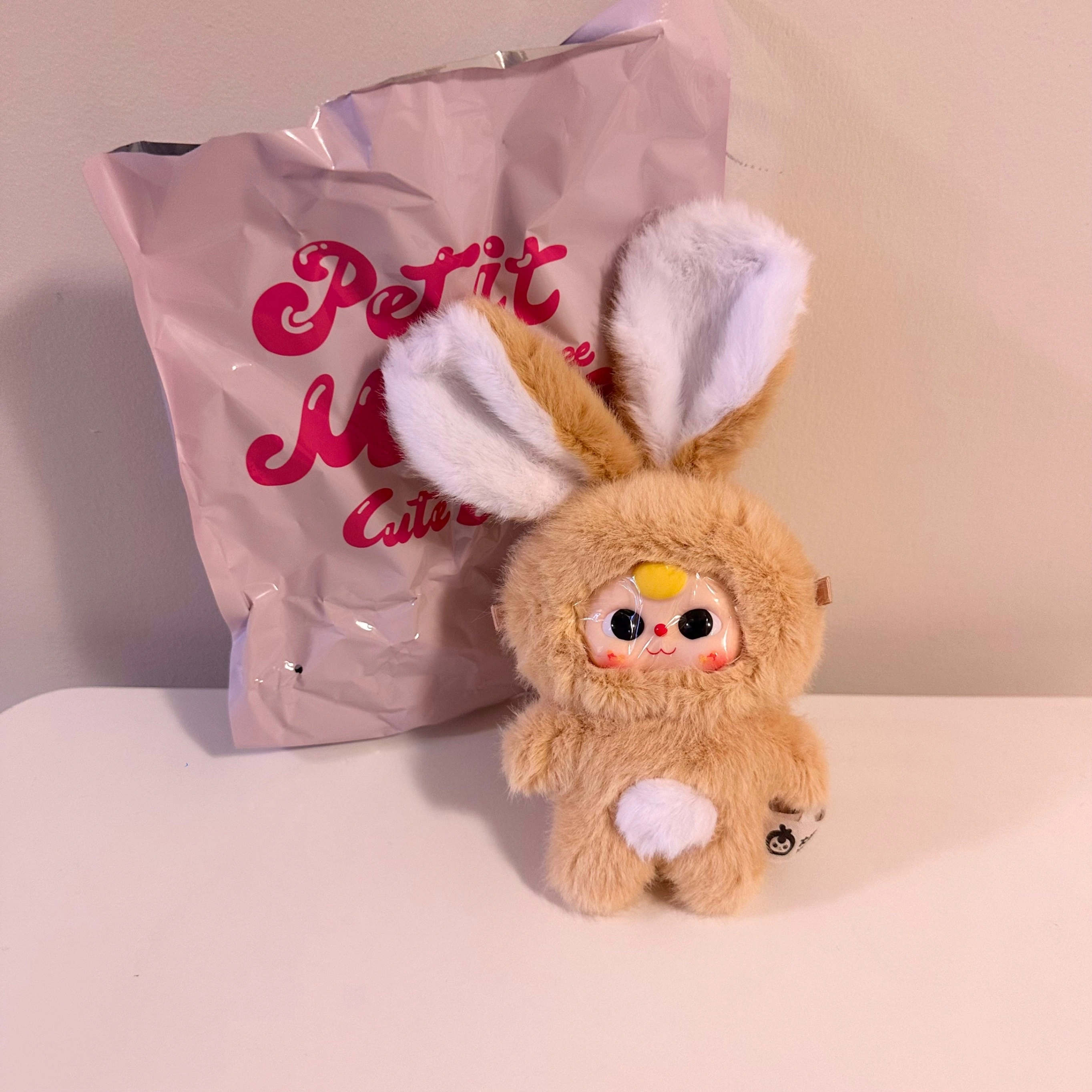 Opened blind box, but brand new (never been put on display) Baby Three Macaron "cocoa" bunny. There's nothing wrong with the bunny, it's just not the one I wanted. I opened the box from the bottom so you can seal it up again if you're buying it for a gift, however the blind bag has been ripped open (although you can seal that as well.) Care instructions: wipe clean with damp cloth to keep your bunny fresh.