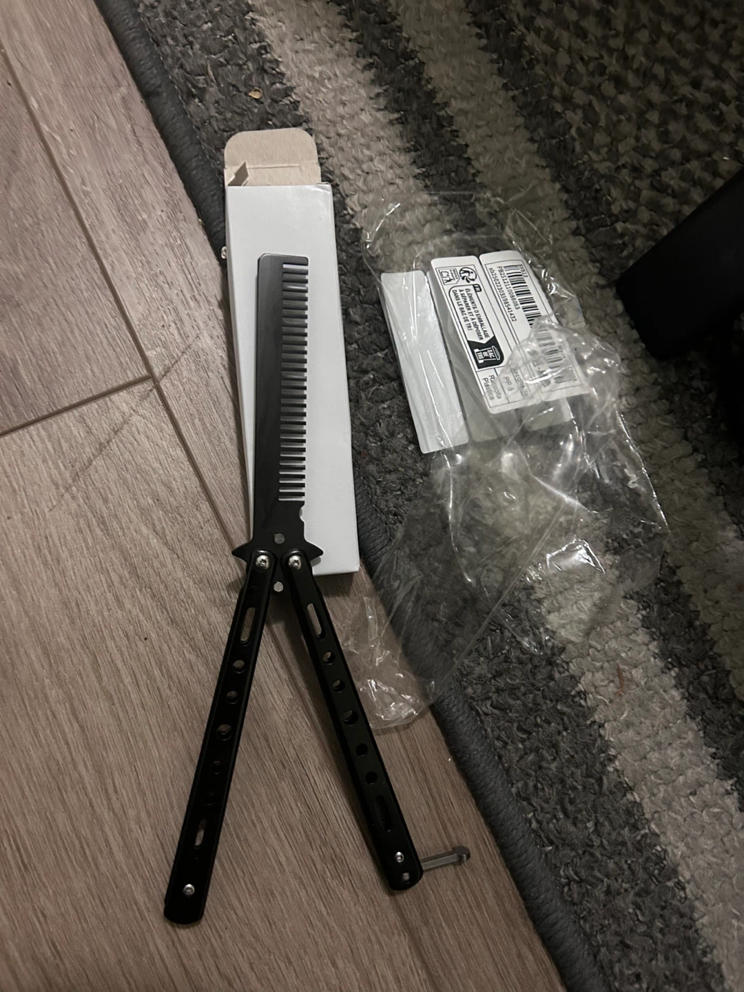 This is a butterfly comb trainer, perfect for practicing your flipping skills without the risk of sharp blades! It's in great shape and comes with its original box and packaging