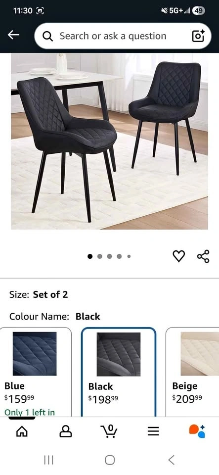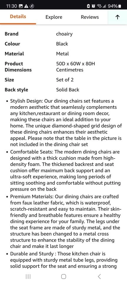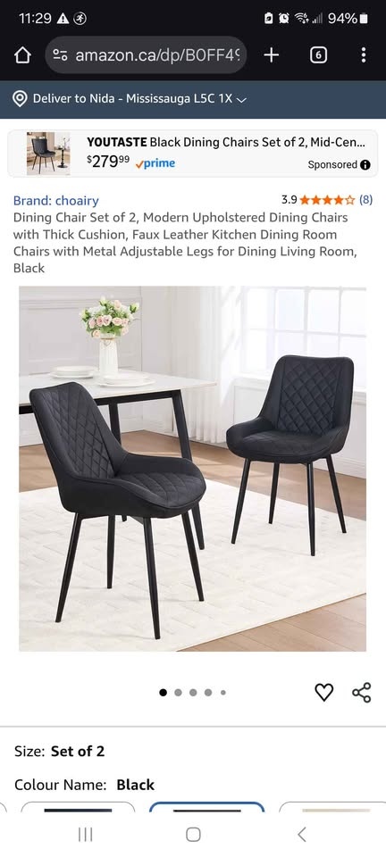 Dining Chair Set of 2, Modern Upholstered Dining Chairs with Thick Cushion, Faux Leather Kitchen Dining Room Chairs with Metal Adjustable Legs for Dining Living Room, Black