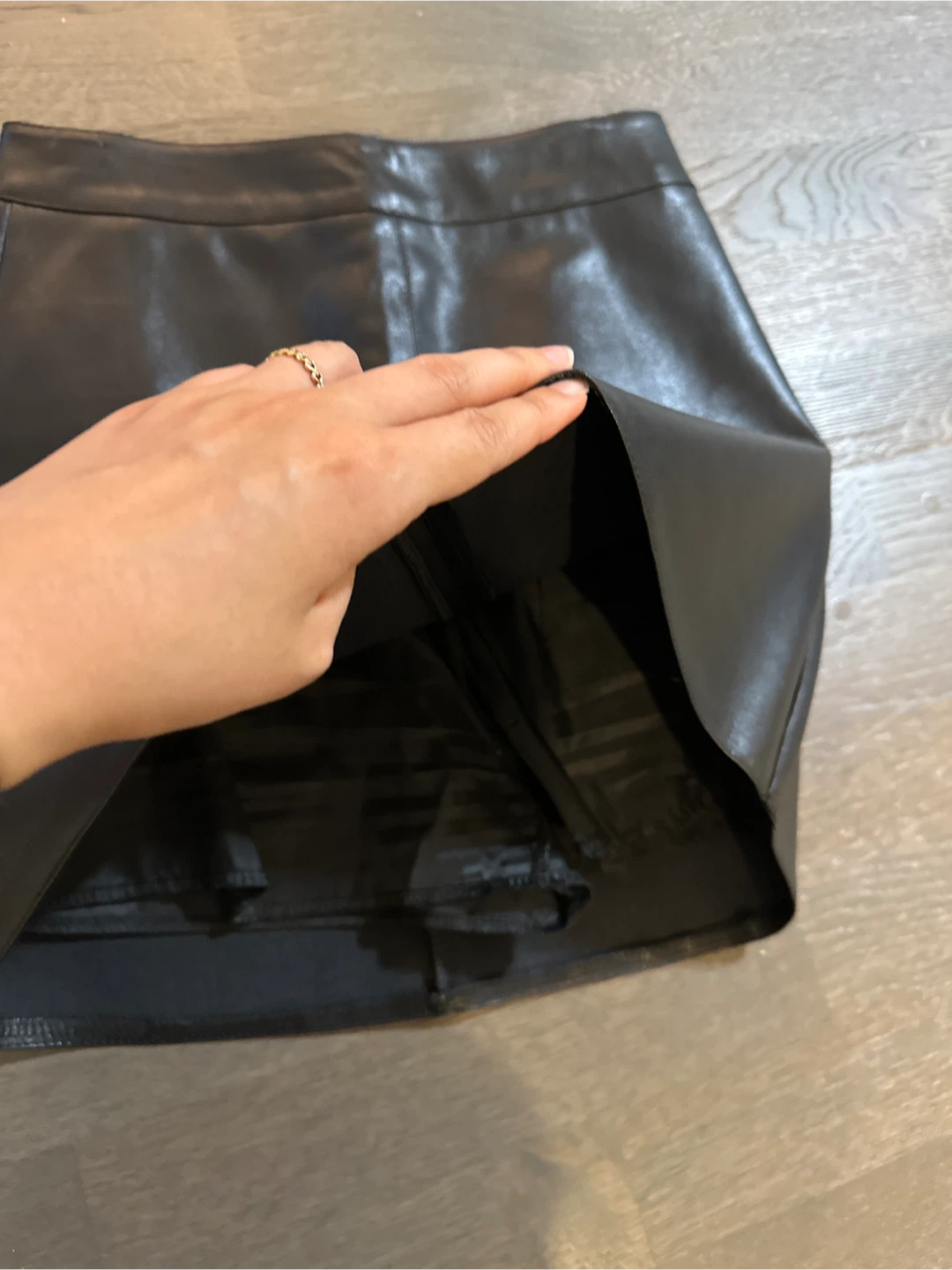 Selling a stylish black faux leather mini skirt! It's in great condition and perfect for adding a bit of edge to your outfit. Inner pants attached ♣️ (waist 67cm =26.378 in)